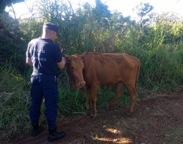 La Policía tomó conocimiento del hecho durante la tarde del lunes, cuando un vecino de 35 años residente en la picada Río Victoria, en San Vicente, manifestó que le habían sustraído un animal vacuno de aproximadamente 250 kilos.A partir de ahí se realizó un amplio rastrillaje en la zona que en las últimas horas desembocó en el kilómetro 980 de la ruta nacional 14, donde dos hombres estaban ofreciendo a la venta el animal. Al percatarse de la presencia policial, ambos individuos emprendieron la huida y todavía no pudieron ser encontrados.Entretanto, el animal fue puesto en resguardo y posteriormente entregado a su dueño.