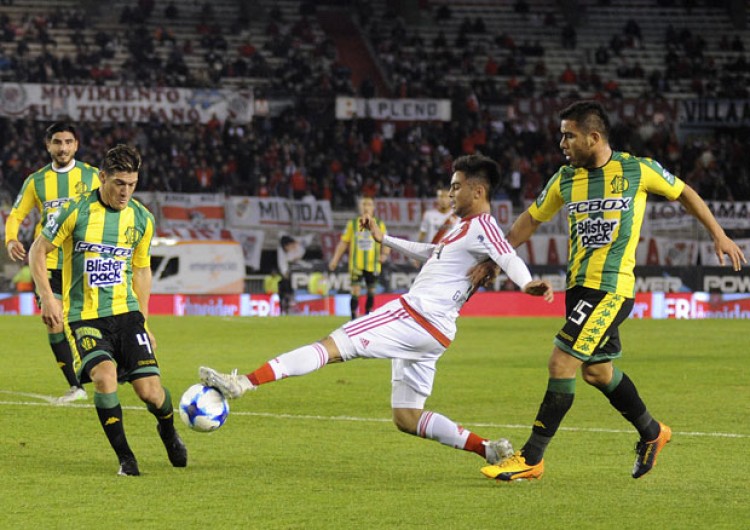 Lucas Martínez Quarta, quien horas antes dio positivo un control antidóping tras un encuentro por Copa Libertadores, marcó el tanto que le dio la victoria al elenco "millonario" a los 23 minutos del complemento.El esforzado empate conseguido por Olimpo en Bahía Blanca impulsó al elenco marplatense a realizar un planteo un tanto más ambicioso del acostumbrado ya que una derrota en Núñez lo comprometía en demasía. Un "Millonario" un tanto desvaído y que solo luchaba por ingresar a la Copa Libertadores intentó ejercer el control del desarrollo pero fue ineficaz a la hora de colocar a sus arietes frente al arquero Vega. A todo esto la formación de Perazzo se escalonó ordenadamente y apenas se hacía del balón intentaba lastimar mediante alguna réplica. En tres jugadas determinantes de la primera mitad el arquero Batalla se reivindicó de sus últimas fallidas actuaciones, primero ahogándole a puro reflejo el grito de gol a Bandiera a los 15 minutos, luego desviando un cabezazo de Galván por encima del travesaño a los 43 y por último al estirar su pie después de un remate desde corta distancia de Alegre, un minuto después. Considerando que las únicas aproximaciones serias fueron de Aldosivi ante un River que no exigió nunca a Vega, puede consignarse que se notó demasiado la diferencia de motivación entre un equipo portuario enfocado en su objetivo y un local jugando a ritmo de entrenamiento al perder la fecha pasada la chance de campeonar a manos de su "archirrival". Seguramente Gallardo les habrá trasladado el descontento a sus dirigidos en el entretiempo, a juzgar por el rostro desencajado que mostró el "Muñeco" en pleno dominio del conjunto visitante. Por ello, en el complemento se vio a un dueño de casa que pareció salir de su letargo ante un adversario que peligrosamente se comenzó a "enamorar" de una igualdad que si bien no lo ponía a resguardo del descenso lo hacía llegar con mayor probabilidad de salvación a la última fecha. Cuando el desarrollo se encontraba en plena meseta un grosero yerro del dubitativo guardavalla visitante, quien no retuvo un débil remate de Gonzalo Martínez a la salida de un tiro libre, provocó la arremetida de Martínez Quarta para poner en ventaja al elenco de la banda roja.Ese tanto pareció redimir a su autor por el mal momento experimentado antes del encuentro tras el control antidóping efectuado por la Conmebol que le dio positivo.La buena faena del citado Martínez Quarta en defensa, la regularidad de Ponzio y la excelente actuación de Batalla, sostuvieron al hoy pálido vencedor después de un primer tiempo que lo mostró en su peor versión. En el complemento el anfitrión se recompuso parcialmente consiguiendo un triunfo sin demasiado brillo ante un "Tiburón" que dejó pasar su mejor momento y está casi obligado a conseguir una victoria en la última jornada ante Olimpo para conservar la categoría. Fuente: Agencia de Noticias NA