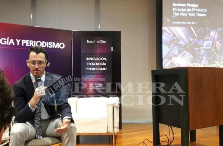 La charla, organizada por Telecom bajo el título de "Innovación, Tecnología y Periodismo", se desarrolló durante la mañana e este jueves en el edificio de la empresa en Puerto Madero, donde confluyeron más de un centenar de representantes de medios de comunicación de todo el país para conocer de primera mano el proceso de adaptación de The New York Times a la era digital.Andrew Phelps fue uno de los integrantes del grupo de trabajo que creó el célebre "Innovation Report" en 2014, y que desembocó en una transformación radical de las formas de trabajar en el diario impreso más prestigioso del mundo para convertirlo también en uno de los referentes del periodismo digital. En este terreno, la clave según Phelps es el "desarrollo de la audiencia": poner al lector en el centro del trabajo periodístico, "acercarse a la gente, comunicarse en su idioma, pasar de la voz autoritaria a ponerse a la altura del otro, para generar confianza". Es que hasta hace muy poco "el New York Times era muy bueno haciendo periodismo pero estaba muy atrasado en hacer llegar ese buen periodismo a su audiencia".En apenas tres años, eso cambió drásticamente a través de pensar "primero en digital", de incorporar a su redacción la cultura de la innovación, adaptarse, experimentar y aprender de los errores".