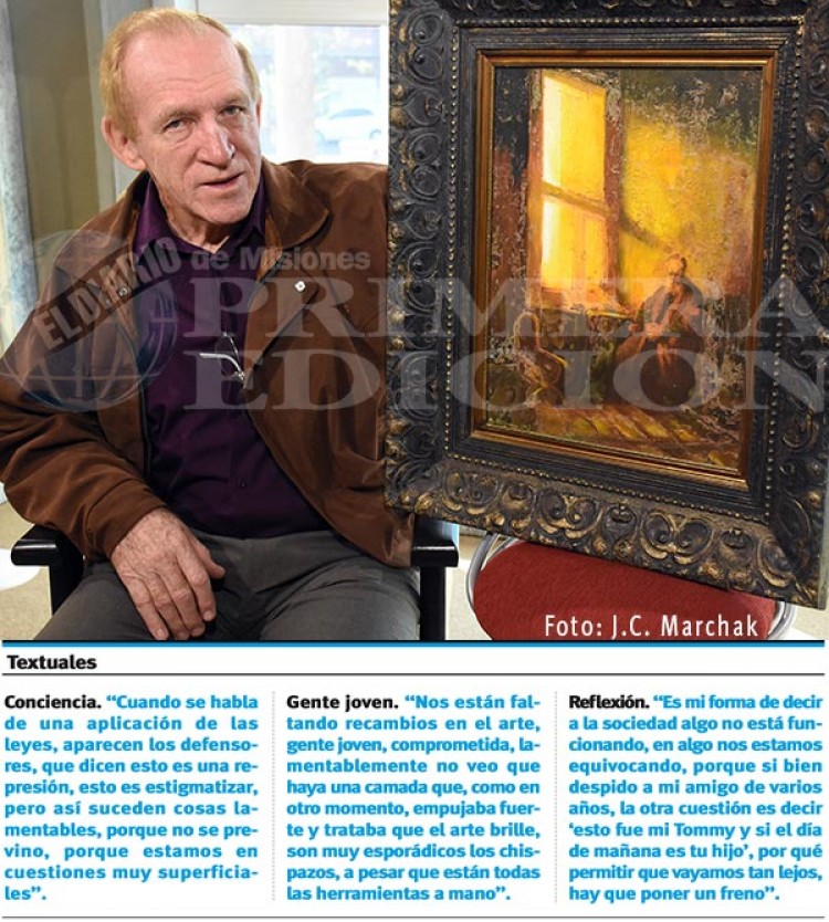 “Reflejos en colores del alma” es el nombre que Bernardo Neumann escogió para la muestra que abrió hoy, en el Museo de Bellas Artes Lucas Braulio Areco, Rivadavia 1846. Exposición para la que, como en cada oportunidad, el artista puso todo de sí, pero esta vez con un mensaje diferente, el pedido (a gritos) de toma de conciencia como sociedad, como partícipes de un todo que se pierde en egoísmos, en banalidades.En una charla íntima y “con el corazón en la mano”, Neumann dijo a PRIMERA EDICIÓN que el encuentro con el público esta vez tendrá “una connotación un poco diferente, si bien estarán mis cuadros tradicionales, en esta oportunidad los sentimientos van a estar mucho más exacerbados, fueron más provocados por un hecho que para algunos tal vez es algo muy banal, muy nada, pero quienes somos sensibles lo trasladamos también a otra esfera. Hace días, mi perro, que como toda mascota tiene su historia particular, iba paseando con la cuerdita, como corresponde, salió un pitbull y lo destrozó. En primer lugar me arrancó llanto, luego desesperación y me motivó a hacer una instalación, muy desgarradora, que no tiene otra intención más que movilizar y llamar la atención, detenernos a ver qué nos está pasando como sociedad”.“Estamos transitando una situación muy difícil de comprender, entiendo que los tiempos han cambiado, pero la insensibilidad, la irresponsabilidad, la prepotencia es el común denominador de la mayoría”, entendió.“Desde el momento en que la respuesta fue ’es solamente un perro, los animales se matan, es la ley del más fuerte’” el desinterés se replica, sin embargo “no es así, no es la culpa del animal, porque es un armado genético destinado a luchar y matar, ve algo que se mueve y es una presa; y es la irresponsabilidad de las personas que lo tienen también me describe el perfil de alguien”, sostuvo.E hizo hincapié en que muy cerca está el Instituto Jesús Niño, “qué pasa si dos chicos pasan corriendo, gritando, jugando. Podemos caer tan bajo”, se preguntó y respondió; “En esta oportunidad fue mi perro y me parte el alma”. Ese sentimiento “lo cargo en esta instalación, pero también quiero ir un poco más allá, somos testigos que en la costanera, por ejemplo, vemos pasear a la gente con perros grandes, sin las más mínimas medidas de seguridad. Las imágenes, las fotos que publiqué en Facebook tuvieron mucha repercusión y de todos los colores, eso también nos pinta un panorama de cómo estamos viviendo, alguien dijo ‘dejate de jorobar y ponete a hacer cosas útiles’, y agradezco ese comentario, porque hice algo útil, lo movilicé, de otra manera tal vez hubiera sido nada”, apuntó.Responsabilidad social“Personalmente le tengo mucho miedo a los prepotentes y a los insensibles, en estos momentos estamos inmersos en un mundo que no entiendo, algo tiene que pasar después de todo este caos, los artistas, los creativos tenemos las herramientas para movilizar; entonces esta muestra, este ‘homenaje’, o como fuere, apunta es sacudir conciencias, lo que está no es jamás la foto del pobre animal, ni un resto óseo, es plástico derretido, esponja sintética, color y su cuerdita, que ya no va a usar más, son elementos físicos, todo lo demás queda en la imaginación, en el espectador, que va a ser quien va a agregar todos los sentidos y elementos que movilizan o no, rechazo o aceptación, todo en un contexto muy amplio, en el cual estoy tan sensibilizado, porque fue mi amiguito, pero qué pasa con aquel que perdió un hijo; a una amiga, porque fue arrollada por alguien que conducía un auto a 200 kilómetros por hora, aquellos que perdieron a sus familiares porque algún inconsciente se los llevó por delante y no hay ningún respaldo jurídico, no hay nada, no hay lamentación, nada que realmente prevea las cosas”, cuestionó el artista.“Por qué tenemos que estar siempre detrás, cuando una criatura termine despedazada vamos a decir también ‘fue un niño nomás’, ¿a eso nos lleva esto? La sociedad está realmente en una crisis muy seria, nos estamos preocupando por cosas en las que tal vez los noticieros están muy inmersos pero en la cotidianeidad, en reglamentar lo que a nosotros nos hace verdaderamente como sociedad, lo chiquito, que se cuide el tránsito, que las leyes se apliquen, es todo muy laxo, entonces pasan estas cosas”, subrayó.Y adelantó que el público se encontrará con todo un recorrido “que va a mostrar una faceta en la que por ahí no se me conoce. Aquí parto de un cuadro que me acompaña desde hace mucho tiempo, que tiene mucho sentimiento, un collage, un autorretrato de cómo me imagino cuando viejo, con una cantidad de símbolos, una silla vacía, que para mí significa aquellos seres que amé y ya no me acompañan; la paz que tiene esa persona, tal como quiero partir”.Para continuar con “una técnica diferente, con la que vengo jugando e investigando desde hace cinco años y que pasa por distintas capas superpuestas de colores, con distintos materiales, que son para pintar, otros no, elaborada y ejecutada con mucho sentimiento”, añadió.“El resumen, el planteo general que hago de todo esto, es que para el pintor, cuando está maduro, experimentado, no importa la técnica que utiliza, porque la adquirió después de todo un camino, fruto de trabajo, de realizaciones, importa lo que puede decir, quiere decir y que llegue; transmitir sentimientos, sensibilizar, movilizar, es una herramienta que tenemos los creativos y no solamente a través de la pintura, a mí Dios me bendijo con esta herramienta pero también, por otro lado, me dio la sensibilidad. No puedo concebir que haya tanta libertad, tanta laxitud en tantas cosas, tanta irresponsabilidad, con el arte quiero logar ir más a fondo. A qué nos está pasando como sociedad; por qué estamos en un callejón de esta naturaleza; qué nos está faltando”, remarcó el pintor e insistió 