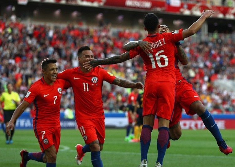 El seleccionado chileno, dirigido por el argentino Juan Antonio Pizzi, empató este domingo con Australia por 1-1 por la última fecha del Grupo B de la Copa Confederaciones y se clasificó a las semifinales, donde se cruzará con la Portugal de Cristiano Ronaldo. La otra llave la disputarán México ante Alemania que, por su parte, superó a Camerún por 3-1 y conquistó el grupo B.El conjunto chileno comenzó el partido disputado en el Otkritie Arena de Moscú abajo en el marcador por el tanto de James Troisi (42m. PT) pero en la segunda etapa el ingresado Martín Rodríguez convirtió el tanto del empate a los 22 minutos.En el equipo del santafesino fue titular el defensor de San Lorenzo Paulo Díaz.La "Roja", representante de Sudamérica por conquistar la Copa América 2015, cerró la primera fase con cinco puntos producto de un triunfo y dos empates.En el otro partido de la jornada, Alemania, vigente campeón del Mundo, venció a Camerún por 3-1 en el estadio Olímpico de Sochi.Timo Werner, en dos oportunidades (21m. y 36m. ST), y Kerem Demirbay (3m. ST) marcaron los goles del equipo de Joachim Löw, mientras que Vincent Aboubakar descontó para los africanos, que desde los 19 minutos del segundo tiempo jugaron con uno menos por la expulsión del defensor Ernerst Mabouka.La primera semifinal entre Portugal y Chile se disputará el próximo miércoles desde las 15 en el Kazán Arena. Y el jueves, Alemania y México, también desde las 15, definirán el otro finalista en el estadio Olímpico de Sochi.La final será el domingo 2 de julio a las 15 en el estadio de San Petersburgo y el partido por el tercer puesto se jugará desde las 9 en el estadio Spartak de Moscú.Fuente: Télam