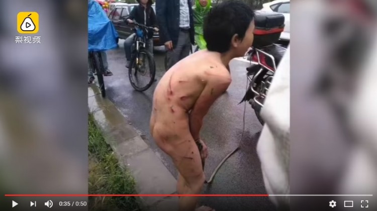 En un duro video que reproducen medios chinos se puede ver a un niño de unos doce años desnudo y con el cuerpo lacerado tras haber recibido una brutal gopiza por parte de su padre por haber supuestamente robado dinero.El hombre castigó a su hijo por la extracción del dinero y lo subió a una moto desnudo atando sus manos con una cuerda, y lo expuso por las calles de Yunnan el pasado viernes 30 de junio, según el diario straitstimes.com.En las imágenes del video que se volvió viral, se puede ver a los transeúntes indignados, informó el South China Morning Post (SCMP) y al niño que está cubierto de cortes y contusiones temblando por el frío bajo la lluvia.Se puede escuchar a personas que le reprochan al padre, que más tarde intenta quitarse la chaqueta y darle a su hijo para que se cubra después de que la multitud enfurecida le ordena hacerlo.Sin embargo, el niño no acepta la campera del hombre.De acuerdo con PGCS, el padre defendió sus acciones diciendo que estaba castigando a su hijo por el robo de 100 yuanes (u$s 20,32) de la familia, y por pasar la noche anterior jugando fuera de la casa y faltar a la escuela.PGCS citó un informe del portal de noticias locales Yunnan.cn, añadiendo que el padre admitió que castiga con regularidad a su hijo por ser "travieso con frecuencia".El padre, que sería un trabajador migrante de la provincia de Guizhou, más tarde desató a su hijo y lo sentó en la motocicleta antes de conducir lejos.La policía local dijo que están investigando el incidente, según straitstimes.com.Fuente: Medios digitales