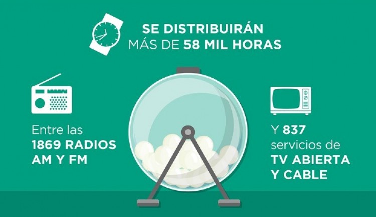 El organismo que depende del ministerio del Interior, Obras Públicas y Vivienda realizará el sorteo a las 12:00 en su sede ubicada en Gascón 352 de esta Capital.El sorteo, que será transmitido en directo por el canal de Youtube InfoDINETV, distribuirá más de 58.000 horas para la publicidad electoral entre las agrupaciones políticas que presenten precandidatos en las elecciones Primarias, Abiertas, Simultáneas y Obligatorias.La Dine adjudicará los espacios de publicidad electoral en 2.707 medios de todo el país: 1.869 radios AM y FM y 838 servicios de cable y TV abierta, se informó oficialmente. De esta manera, se dividirá el 50% de forma igualitaria entre todas las agrupaciones políticas que presenten listas y el 50% restante de manera proporcional a la última elección a Diputados Nacionales. La publicidad se desarrollará durante los 18 días previos al acto electoral del 13 de agosto, que, según el cronograma establecido, se extenderá desde el 24 de julio hasta el 11 de agosto, cuando se iniciará la veda. Los resultados, estarán disponibles para ser consultados en la en la página <a href="http://www.elecciones.gob.ar/">www.elecciones.gob.ar</a>.Fuente: NA