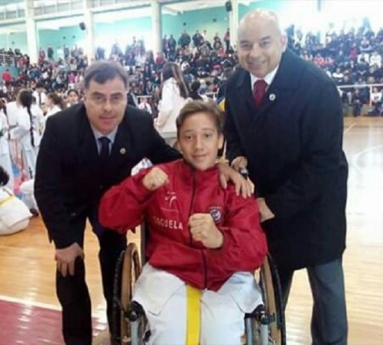 Un chico de 12 años logró paralizar a los más de mil instructores y competidores que el último domingo participaron del Torneo Nacional de la Asociación Integral de Taekwondo que tuvo lugar en el Centro Provincial de Alto Rendimiento Deportivo (Cepard) de Posadas. Es que Thiago Engel no puede caminar y, pese a ello, compitió en la modalidad de formas, que es un esquema de movimientos de defensa y ataque que se realiza para pasar de categoría. “Fue muy emocionante, las competencias estaban organizadas en forma simultánea en ocho tatamis o áreas de competencia y la actividad se paró en todos los tatamis salvo en el número 1, en el que estaba Thiago. Jueces, instructores y alumnos lo miramos hacer el esquema y al terminar todo el estadio lo aplaudió. Las autoridades, entonces, nos acercamos a premiarlo con el primer puesto y además recibió una medalla del Ministerio de Deportes en honor a su gran espíritu deportivo, compromiso y ganas de superación”, contó a PRIMERA EDICIÓN el presidente de la Asociación Integral de Taekwondo, el séptimo dan Fernando Yerusalmi. Esta organización nuclea a unos 1.900 alumnos de cinco provincias del país. Arte marcial inclusivo Thiago cursa el sexto grado en la Escuela 301, ubicada en el barrio Sur Argentino de esta ciudad. Tiene dos hermanas mayores y empezó a practicar taekwondo en 2015 en la “Escuela Panambí” de esa disciplina milenaria que funciona en el Club Capri, a cargo del instructor Sabunnim Gustavo Almada. “El taekwondo es inclusivo, en este torneo participó además de Thiago que se moviliza en silla de ruedas, un niño que es autista y otro chico que tiene hemiplejía. No solo pueden practicar esta disciplina milenaria sino también participar de las competencias junto al resto de sus compañeros, para ello hacemos circuitos adaptados a cada discapacidad”, precisó Yerusalmi. El Torneo Nacional que tuvo sede en Posadas se realizó el 2 de julio y asistieron 607 competidores de Chaco, Corrientes, Ciudad Autónoma de Buenos Aires, Buenos Aires, Santa Fe, Córdoba y todo Misiones (Oberá, 25 de Mayo, Santa Rita, Alba Posse, San Francisco, Eldorado y Posadas). Solo de Posadas participaron de los clubes Capri, Itapúa, Racing, Asociación Vecinal barrio Centenario, Sociedad Polaca y los colegios San Basilio Magno, Pedro Goyena, Roque González, entre otros.“Estamos muy contentos con la experiencia del torneo, contamos con la presencia y respaldo del ministro de Deportes, Rafael Morgenstern; también del jefe de la Escuela de Cadetes de la Policía de Misiones, Sandro Martínez, que colaboró con 30 cadetes que oficiaron de seguridad y contención a una convocatoria de unos 1.400 espectadores y 607 competidores”, indicó.