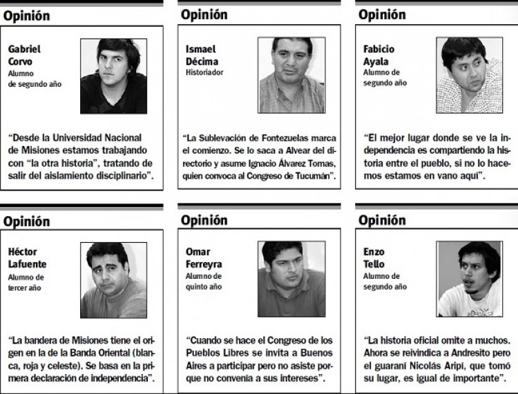 (Informe completo publicado el 9 de julio de 2012) Con el protagonismo indiscutido del general José de San Martín, finalmente el 9 de julio de 1816 los congresistas de varias provincias, que hoy componen Argentina, reunidos en Tucumán declaran la independencia de las Provincias Unidas del Sud.La célebre frase del libertador “Seamos libres ahora, lo demás no importa” pone el sello a su gran actuación por la libertad de estas tierras americanas. Pero para entender en su mayor dimensión la declaración de la independencia del 9 de julio de 1816 también hay que tener en claro lo que pasaba -como mínimo- dos años antes en el contexto local e internacional, algo que fue posible interpretar durante un nuevo y valioso debate temático, propiciado por la carrera de Historia de la Facultad de Humanidades de la Universidad Nacional de Misiones, en exclusiva para PRIMERA EDICIÓN.Esta vez la charla estuvo enriquecida con el aporte de un grupo de entusiastas alumnos desde segundo a quinto año del cursado de la carrera, quienes se ocuparon de poner en alto el trabajo revisionista de algunos investigadores de ese campo. La deliciosa mesa contó con la moderación del historiador Ismael Humberto Décima.Otro de los aspectos principales de la mesa fue poner en alto las actuaciones en otra fecha que muy pocos conocen: la del 29 de junio de 1815, cuando los Pueblos Libres (integrados por las provincias de la Mesopotamia, Santa Fe, Córdoba y la Banda Oriental) firmaron su independencia de España.“Una de las bases de esa independencia que declaran los estados que formaban los Pueblos Libres es que ’todas eran iguales y ninguna debía someter a la otra’. Lamentablemente varios intereses terminan sofocando esta declaración inicial, principalmente porque Gervasio Artigas, el protector de los Pueblos Libres, proponía una reforma agraria que tocaba los intereses de quienes después prevalecieron por encima de él y sus ideas, ya que su pretensión era dar la tierra en propiedad de quien la trabajara”, explicó en síntesis el alumno avanzado Omar Ferreyra.“Artigas proponía el verdadero federalismo, porque si bien se iba a formar un país llamado Virreinato del Río de la Plata, cada provincia iba a tener la misma igualdad y los mismos derechos y firman un tratado mediante el cual se comprometen a que ninguna provincia iba a subyugar a la otra. Un modelo abiertamente diferente al de Buenos Aires”, añadió el profesor Ismael Humberto Décima.Otro brillante aporte lo hizo el alumno de tercer año, Héctor Lafuente, quien señaló lo que aparece en algunos libros al mencionar la gesta: “Lo que tiene que saber el pueblo misionero es que esta provincia no mandó representantes al Congreso de Tucumán no por nada, sino por la sencilla razón de que había adherido a la independencia de los pueblo libres un año antes. Ya era un Estado independiente”, remarcó.“En algunos libros aparece el planteo de Artigas sobre las repúblicas y se menciona “la república de Corrientes, la república de Entre Ríos que eran territorios libres con su propio ejército. Sería bueno en todo caso recordar la fecha del 29 de junio, porque fue importante aunque censurada por la historia oficial. Un dato: en Corrientes esa fecha se la celebra todos los años”, añadió Ferreyra.“A Gervasio Artigas se lo tiene bastante tapado y más bien parece un prócer ajeno, pero en realidad es nuestro, pero como nos quieren separar a uruguayos de argentinos, al interior con Buenos Aires, cuando en realidad es muy importante que sepamos de la unidad histórica, que lamentablemente por decisiones propias de gobernantes del pasado se los omitió. Cuando se hace el Congreso de los Pueblos Libres se invita a Buenos Aires a participar pero no quiere estar porque esta declaración de ’igualdad’ no le conviene. La respuesta del directorio es socarrona, les responde ’que se independicen si quieren’, como dando a entender que no le importa. Con ello se pierde por ejemplo la soberanía del Uruguay que era parte del virreinato, que termina de sellarse en 1825 cuando el imperio portugués se disputaba esas tierras con las Provincias Unidas del Sur. Cuando ocurre la invasión brasileña a la Banda Oriental, se pide ayuda a Buenos Aires y este le exige que reconozca el Congreso de Tucumán a lo que Artigas responde ’no voy a negociar la independencia de mi pueblo’ y lo rechaza”, contaron.Algo muy importante indicó Décima: “San Martín quien de primera mano juzga como el “malo” a Gervasio Artigas después cuando en 1918 Buenos Aires lo convoca para que lo enfrente militarmente con sus tropas, el general se niega diciendo “vine a pelear contra los godos, no contra criollos’. De ahí que el gobierno central deja de enviarle dinero”.“Eso es algo que lo oculta la historia oficial, como por ejemplo que es Chile el que le paga al ejército patriota en la expedición a los Andes. Otra cosa que no se cuenta es que Chile y Perú le siguen pagando los sueldos cuando se encuentra exiliado en Europa”, fueron algunos de los aportes deslizados en la mesa.“Hasta aquí la historia se ha comprendido, ya es tiempo de cambiarla”“Esa frase nos sirve para analizar ¿con qué tipo de relato histórico nos quedamos? Desde la UniversidadNacional de Misiones estamos trabajando con “la otra historia”, tratandode salir del aislamiento disciplinario con un nuevo paradigma quedice que la “historia oficial nos va a presentar una visión de las cosas y lahistoria oculta o fabulada no va a dar otra”, explicó el alumno FabricioAyala.Para desacreditarla se ha dicho y se dice que “esta historia no es científica". “Esto pasa porque la lucha contra el paradigma creado por un estado país está muy arraigadoporque fuimos forjados en esa educación, en esa historia oficial mitrista (quien decía a veces la “verdad” tiene que estar aparatada del relato para no herir el sentimiento patrio) en donde muchos acont