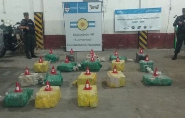 Más de 400 kilos de marihuana fueron secuestrados en el interior de un auto abandonado, durante un patrullaje realizado por efectivos de Gendarmería Nacional en la ruta nacional 12, en inmediaciones de la localidad correntina de Itatí. El hallazgo se produjo en las últimas horas en el interior de un auto Ford Focus, que estaba con las puertas abiertas, hallado abandonado sobre la banquina, a la altura del kilómetro 1.070 de la mencionada ruta, entre Itatí y la vecina localidad de San Cosme, en la zona norte de la provincia. El auto fue encontrado por efectivos del Escuadrón 48 "Corrientes", de Gendarmería Nacional, que realizaban tareas de rastrillaje en la zona, a través de puestos móviles y fijos. Al hallar el auto estacionado, con varios bultos en su interior, los uniformados cercaron el lugar y concluyeron que el vehículo tenía un total de 433,554 kilos de marihuana, distribuido en 519 paquetes contenidos en 18 bultos. Tanto el rodado como la droga fueron puestos a disposición de la Justicia Federal de Corrientes, informaron medios locales.Mientras, se inició un rastrillaje en la zona para tratar de dar con los ocupantes del auto, que habrían abandonado el vehículo ante la presión de los controles de la fuerza."Narcociudad"La localidad de Itatí, que tiene unos 6.500 habitantes y está situada en el norte de la provincia, en los últimos meses fue sacudida por las investigaciones en torno a al menos dos organizaciones dedicadas al narcotráfico a gran escala.En el marco de esa causa, a fines de mayo pasado fueron imputados y detenidos el intendente local, Roger Terán, del Frente por la Victoria (FpV) y su vice del PRO, Fabía Aquino, junto a otras 24 personas.La misma suerte había corrido la hija del intendente, Alejandra Terán, de 27 años; Hernán Aquino, hermano del intendente, y la concejal Marcelina Sosa. Fuente: NA