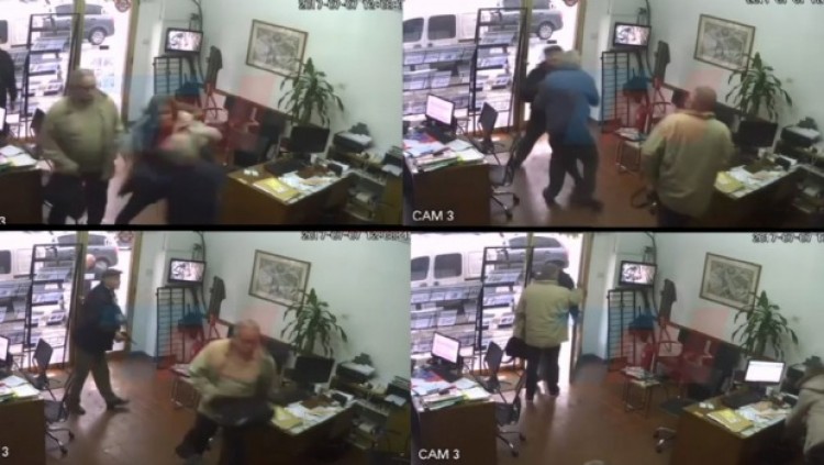 Si bien trascendió hoy por la difusión del video donde quedó registrado el intento de robo, el hecho ocurrió el viernes pasado a las 12.08 del mediodía en la inmobiliaria “Amelio & Cia.”, situada en la avenida San Juan 2817.Horacio Saracca, uno de los dueños de la inmobiliaria, aseguró que todo se inició el martes cuando las mismas tres personas fueron “a preguntar por una tasación” y volvieron el viernes “para robar”.“El señor de boina me dijo que el señor de gorrito era el primo y que la señora era la hija y querían tasar una propiedad en la calle Moreno”, explicó la víctima, quien afirmó que el mayor de los ancianos, quien portaba el revólver, “tendría unos 70 años, el otro unos 60 y la señora, 50”.De acuerdo a lo que se observa en el video, ni bien los tres delincuentes ingresan a la inmobiliaria y se cierra la puerta, el anciano de boina extrajo un revólver de entre sus ropas, amenazó a Saracca y a su padre de 77 años y les pidió que se fueran al fondo del local.“Dijo algo así como ’quédense quietos o los bajo’ y ahí corrí”, contó el comerciante inmobiliario, quien logró subir las escaleras internas del local y comenzar a gritar desde el primer piso pidiendo ayuda.La cámara de seguridad registró el momento en que los bautizados “abuchorros” empujaron a Saracca padre, quien cayó al piso y, más allá del golpe, no salió lastimado.El comerciante explicó que es el segundo asalto que sufren en tres meses que el hecho anterior fue “mucho más violento” y su padre “terminó con la cadera fracturada”.Pese a que en el video se observa a la mujer de la banda pasó por un escritorio e intentó sin éxito abrir los cajones, los delincuentes escaparon sin robar nada.Saracca afirmó que “hace años que las inmobiliarias no manejan efectivo porque todas las transacciones se hacen por transferencia” y que ahora tomaron la decisión de “blindar el local” y “atender detrás de un vidrio como en los bancos”.El caso es investigado por la Fiscalía Nacional en lo Criminal y Correccional 8, a cargo del fiscal de instrucción Fernando Fiszer, y de los efectivos de la comisaría 20 de la Policía de la Ciudad, quienes esperaban que en los dueños de la inmobiliaria aporten el video original del robo a la causa.“Por el momento no tenemos ninguna pista de los abuelos y la mujer. La difusión del video en los medios puede ayudar a que llegue alguna pista”, dijo a Télam uno de los investigadores policiales.