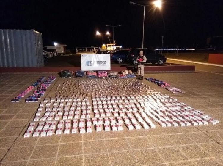 En el primero de ellos, efectivos de la Prefectura Naval detuvieron un automóvil sobre la avenida Marconi y Cabred de la capital provincial y constataron que en el interior del rodado había bultos de gran tamaño.Al requisar el interior, los prefectos secuestraron 1.990 atados de cigarrillos y mercadería de contrabando valuada en 280 mil pesos. Intervino la Fiscalía Federal 1, que ordenó la incautación de la mercancía.El segundo operativo tuvo lugar en Puerto Iguazú, donde personal de Prefectura controlaba vehículos en la cercanía del paraje Colmina (kilómetro 1.926 del río Paraná). Allí, uno de los autos interceptados transportaba productos que no contaban con el aval aduanero, valuados en 162.540 pesos, los cuales fueron decomisados inmediatamente. Fotos: Prensa Ministerio de Seguridad