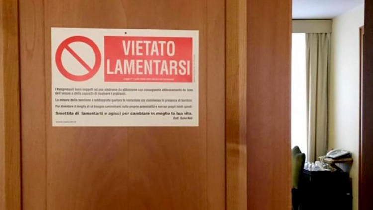 Se trata de un regalo que le dio un psicólogo durante una audiencia general en la plaza de San Pedro y que el papa argentino decidió colgar en la puerta de su habitación durante estos días de vacaciones que pasa en su residencia durante los cuales ha recibido a varios amigos y sacerdotes.La historia ha sido divulgada junto con una fotografía por el veterano vaticanista Andrea Tornielli en la sección Vatican Insider de La Stampa. Con tono divertido el cartel advierte también que los "transgresores son sujetos a un síndrome de victimismo con la consecuente disminución del tono de humor y de la capacidad para resolver problemas".El curioso aviso fue notado por algunos de los visitantes que pidieron permiso para divulgar la foto. El cartel fue regalado al papa por el psicólogo Salvo Noé, autor de varios libros y cursos de motivación, explicó Tornielli.El Papa se tomó unos días de descanso de verano, los cuales pasa en su residencia, donde sigue recibiendo amigos y al parecer mantiene el buen humor pese al clima tenso y las polémicas que algunos vaticanistas aseguran reina dentro el palacio apostólico por los cambios aprobados dentro de la Curia.Fuente: Agencia de Noticias AFP/NA