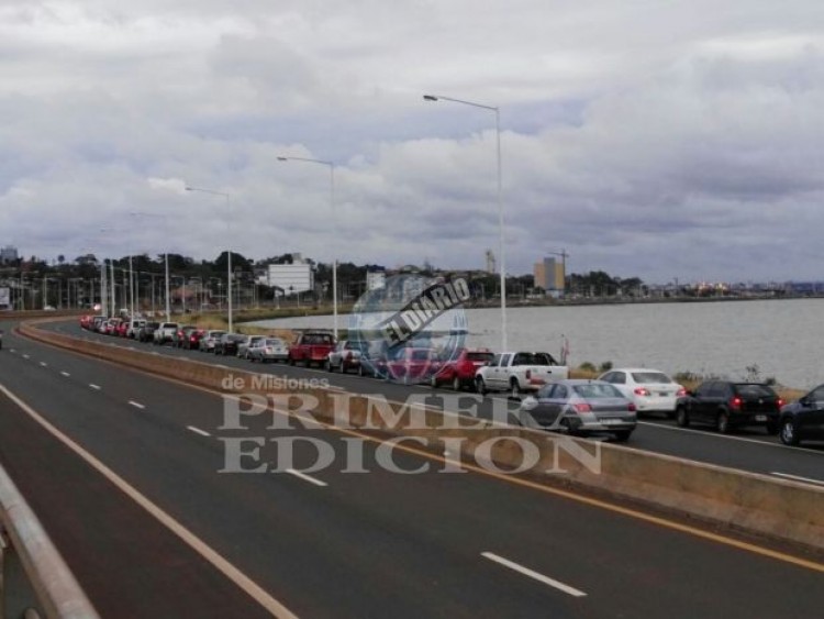 Lejos de "encerrarse" para evitar la ola de frío, los posadeños volvieron a volcarse masivamente hacia Encarnación. Alrededor de las 9:00 de este lunes, la cola de autos para llegar hasta la zona de frontera del puente San Roque González de Santa Cruz llegaba hasta la altura de la avenida Bouchardo.