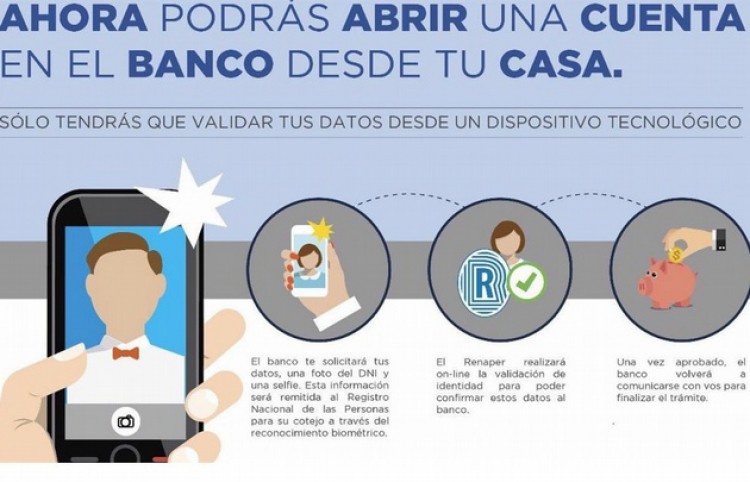 El ministro del Interior, Rogelio Frigerio, y el presidente del Banco Central, Federico Sturzenegger, firmaron un convenio que posibilitará la apertura de cajas de ahorro en forma "no presencial" para nuevos clientes bancarios, informó hoy el Gobierno."La firma se enmarca dentro de la política de bancarización que impulsa el Gobierno Nacional, a través del Banco Central, para garantizar un sistema financiero ágil y rápido, con las mismas posibilidades para todos los ciudadanos, independientemente del lugar donde residan", destacó el Poder Ejecutivo.El Ministerio, a través del Registro Nacional de las Personas (RENAPER), será el encargado de dar el soporte necesario para verificar la identidad de las personas que soliciten los servicios a distancia de las diferentes entidades. Según señaló Interior en un comunicado, para poder acceder a este beneficio el ciudadano deberá descargar la aplicación que el banco le indique, mediante la cual le solicitará el número de su DNI y una foto. Esa información será remitida al RENAPER para su validación a través del reconocimiento biométrico de rostro; una vez certificada la identidad, el banco volverá a comunicarse con el beneficiario para finalizar el trámite. Ese Registro cuenta con una base de datos protegida, donde administra la información más relevante de cada argentino, realizando en promedio 40 mil cotejos biométricos de huella y rostro diarios, para los cuales se utiliza tecnología con estándares de calidad avalados a nivel mundial, lo que le permite interactuar con todos los organismos que lo requieran. "Esta normativa tiene antecedentes en países como España, México y Brasil, en los que la apertura de cuentas mediante celular u otros dispositivos electrónicos ha permitido extender los niveles de bancarización, agilizando los trámites", resaltó el Ministerio del Interior.Fuente:Cadena3