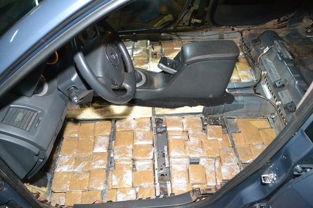 Efectivos dependientes del Escuadrón 10 "Eldorado" de Gendarmería Nacional, que realizaban un control sobre la ruta 12 a la altura del peaje de Colonia Victoria, junto con Unidades de Investigación de la fuerza, detuvieron la marcha de un Renault Megane que circulaba en sentido Norte-Sur. Al realizar las verificaciones correspondientes, los uniformados observaron que el chofer presentaba signos de nerviosismo e incongruencias en su relato acerca del motivo de su viaje. Ante esta situación, se solicitó el apoyo del can detector de narcóticos "Nara" y su guía y, ante testigos, divisaron cómo la perra rasguñaba sobre el sector del piso de los asientos traseros del vehículo de manera exaltada, por lo que el personal de la fuerza procedió a trasladarlos hasta la unidad. Tras la inspección, los gendarmes advirtieron a simple vista que los tornillos de la carrocería habían sido removidos y que en el interior se hallaban 306 paquetes rectangulares con 87,620 kilogramos de cannabis sativa. Intervino en la causa la Fiscalía Federal de Eldorado, que dispuso la detención del conductor y la incautación de la droga y de todo elemento de interés para la causa.Fotos: Prensa GN