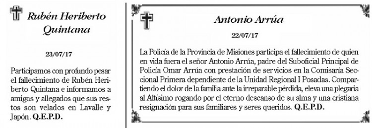 Fúnebres del lunes 24 de julio de 2017