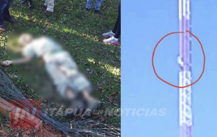 Alrededor de las 15:30 del sábado, un hombre se arrojó desde una antena perteneciente a una empresa de televisión asentada en el barrio San Isidro de Encarnación.El fallecido, quien fue identificado como Mirrael Moura Milhome, era un ciudadano brasileño mayor de edad domiciliado en la Etapa 2 del mencionado asentamiento.El hombre se ingenió para ingresar al predio donde está montada la antena y escaló para luego arrojarse al vacío, lo que le provocó "politraumatismos" que le causaron la muerte, según certificó el médico forense Aldo Von Knobloch.Una testigo reportó en la comisaría 40 del mismo barrio que el hombre hacía días que tenía problemas familiares y que ya había amenazado con quitarse la vida.Fuente e imágenes: <a href="http://itapuanoticias.tv/">Itapúa en Noticias</a>