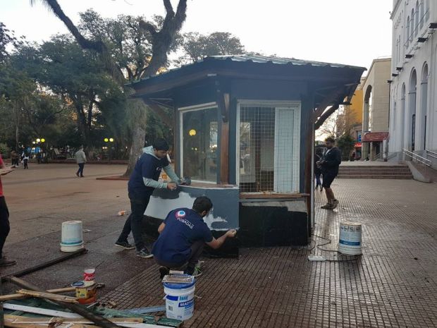 "Instalamos una puerta, restauramos la estructura, lijamos, barnizamos las maderas y pintamos las paredes para dejar la infraestructura en óptimas condiciones para su funcionamiento", destacaron desde la Comuna.Estas tareas proseguirán en los próximos días para otorgarle una mejor imagen a una de las principales plazas de la capital provincial.Fotos: Prensa Municipalidad de Posadas