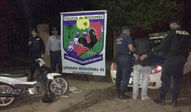 El hecho se conoció este lunes, cerca de las 19.30, cuando un hombre de 62 años llamó al 911 y alertó a la Policía que su hijo había sido asaltado frente al supermercado situado en la avenida San Martín del kilómetro 5 en Eldorado.Los efectivos policiales acudieron al lugar y el damnificado, Iván (30), les contó que cuando salió del comercio notó que dos individuos estaban a bordo de su motocicleta Kymco 110 y cuando intentó alcanzarlos, uno de ellos le apuntó con un arma de fuego por lo que los dejó irse.Desde la UR-III se inició un intenso operativo, encabezado por la división Comando Oeste, y en el Km 5 -altura calle Ecuador- los móviles policiales interceptaron a la moto robada en la que iba uno de los autores del ilícito: Ezequiel B. (20) quien en la huida arrojó un revólver calibre 22 que ya fue incautado. Su cómplice es otro joven ya identificado y que es intensamente buscado por la Policía.Por su parte la moto recuperada está depositada en la Comisaría 2ª y tras las diligencias de rigor será restituida a su propietario.