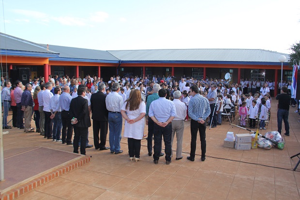 “No hay docente mas afectuoso que el misionero, como transmite los conocimientos en la escuela y forman en ese proceso a personas, el alumno va aprendiendo el concepto de los valores”, destacó el gobernador Hugo Passalacqua y añadió que “estamos viviendo un momento muy difícil y es un momento de una gran oportunidad de generar una provincia un poco mejor y nos toca a nosotros como docentes esa inmensa responsabilidad”.El mandatario estuvo acompañado por el intendente de Oberá, Carlos Fernández; la ministra de Educación, Ivonne Aquino; el ministro de Deportes, Rafael Morgenstern; el diputado nacional, Maurice Closs y otros funcionarios provinciales y municipales.Passalacqua resaltó además el trabajo docente en la construcción a futuro de una sociedad basada en valores: “Solamente la educación es quien nos hace libres, no hay otra forma, es un proceso lento que requiere mucho cuidado y ese valor de libertad es clave para el destino de la comunidad. Y ese es el trabajo, es el proceso, y tendremos sin ninguna duda la sociedad que todos aspiramos”.“Ponemos estos valores por encima de todo, de cualquier diferencia nos falta solamente dar el paso final que es entender que sólo juntos se puede salir adelante”, cerró el mandatario.Con respecto a las obras realizadas en una primera etapa, son cinco salones, la dirección, el patio, los mástiles y la entrada. En una segunda etapa se hizo la reconstrucción de aulas, se cambiaron las ventanas y el techo completo y en una tercera etapa se construyó el playón y el comedor.Según contó la directora del establecimiento, Silvia Penz, en la escuela funciona en el turno de la noche la Escuela de Jóvenes y Adultos N° 1464, que cuenta con siete talleres.En la oportunidad el gobernador entregó un subsidio para el Centro Amigos del Ciego “Margarita Higa” por un importe de 800 mil pesos y también un subsidio por un importe de 956 mil pesos a la Federación de Colectividades de Oberá para la Fiesta Nacional del Inmigrante que se realiza en el mes de septiembre.Como símbolo de la magnífica tarea de sembrar conocimientos que realiza el docente en el aula, se plantó un ejemplar de lapacho, en la entrada al establecimiento educativo.