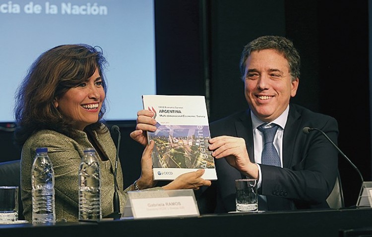 La Organización para la Cooperación y el Desarrollo Económico (Ocde) emitió un informe respecto del “andar” económico de la República Argentina. Tras veinte años sin un informe de este tipo, ahora la Ocde brindó su punto de vista sobre las condiciones de la economía argentina, sobre todo enfocada en el gasto público, el déficit fiscal, la necesidad de una reforma impositiva y el peso de las jubilaciones, sobre todo en términos de sostenibilidad de cara al futuro.El ministro de Hacienda, Nicolás Dujovne, fue el encargado de presentar el informe junto a la directora de Gabinete de la Ocde y sherpa (representante, negociador o asesor gubernamental de alto nivel) del G20, Gabriela Ramos.El funcionario argentino seguró que es un “paso muy importante para acceder a la candidatura. Refleja nuestra visión y objetivos”.Durante su presentación, Ramos señaló que en la Argentina “10% de la población más rica” tiene ingresos “25 veces” más que el 10% más pobre, que “las barreras a la inversión y a los emprendimientos son muy elevadas” y que se debe “fortalecer la red de protección social”.También abogó por “más inclusión para reducir desigualdades y la brecha de género que hoy llega al 20%”.En la presentación del diagnóstico de la entidad, que fue mayormente favorable hacia las reformas liberales que está aplicando el Gobierno del presidente Mauricio Macri, la funcionaria estimó que la economía de Argentina crecerá alrededor del 3% en 2017 y en 2018.Abrir la economía fue uno de los factores que saltaron en el reporte, ya que hay “barreras a la entrada y escaso cumplimiento de las normas que debilitan la competencia en los mercados de productos”.El camino de apertura conducirá a “empleos que se pierdan y otros que se generen”, y en este sentido aseguró que se deberán concretar políticas sociales para “moderar el impacto”.En la misma línea, destacó que la economía “posee más barreras para los emprendedores si se lo compara con el resto de las economías miembros”, y que se debe dirigir hacia una reforma tributaria que conduzca a un esquema más simple y un régimen laboral con mayor flexibilidad, aunque no mencionó puntualmente ninguna reforma.ImpuestosUn capítulo llamó la atención dadas las discusiones y toma de decisiones que se dan en torno al impuesto a las Ganancias. El organismo recomendó bajar el mínimo no imponible sobre la renta de personas físicas para que más personas paguen este tributo de forma progresiva.“El sistema de impuestos es poco eficiente”, destacó el informe, y apuntó a una reforma tributaria que no afecte a los ingresos con otros cuatro cambios en la columna vertebral de la estructura: eliminar gradualmente el impuesto sobre los ingresos brutos y sobre las transacciones financieras; ampliar la base imponible del IVA; introducir progresividad en las contribuciones a la seguridad social; y disminuir temporalmente las contribuciones a la seguridad social para trabajadores con salarios bajos cuyos puestos de trabajo se integren al sector formal.JubilacionesEl reporte puso la lupa también en el gasto en jubilaciones. Hacia el futuro, prácticamente aseguró que no es sostenible si no se hacen cambios. El organismo propone en esta caso equiparar la edad jubilatoria de las mujeres con la de los hombres, es decir, subir los años necesarios de aportes.La polémica recomendación se produce en medio de numerosas denuncias de dirigentes sindicales y políticos que alertan que el Gobierno de Mauricio Macri desarrolla una reforma laboral similar a la que se acaba de producir en Brasil. Ahora, en el país vecino las modificaciones giran en torno a permitir que las negociaciones salariales se den entre empleador y trabajador de forma individual, a eliminar la idea de jornada de trabajo y pasar a un trabajo intermitente, además de permitir los despidos de común acuerdo, entre otros puntos que motivan la flexibilización laboral. SubsidiosEn tanto y para bajar el gasto público, se propuso seguir de forma progresiva con la eliminación de los subsidios a la energía, a las empresas públicas y racionalizar el empleo público, aunque no amplió en detalles en estos capítulos.