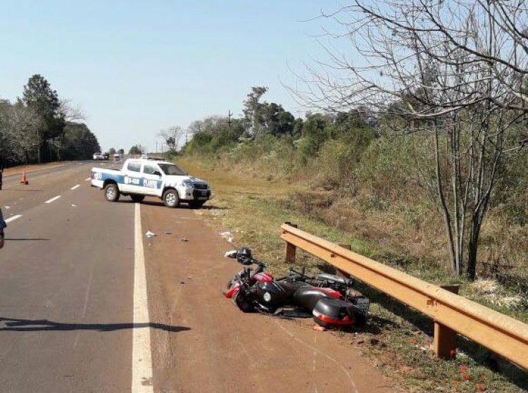 El siniestro tuvo lugar alrededor de las 14.30, en el kilómetro 1.430, por donde la mujer y una conocida viajaban a bordo de una Gilera de 150 cc en dirección al norte.Por motivos que se investigan, el rodado despistó y la víctima sufrió politraumatismo de cráneo, por lo que fue derivada de urgencia a Posadas. Efectivos de la comisaría local y UR-IX realizaron pericias en la escena.