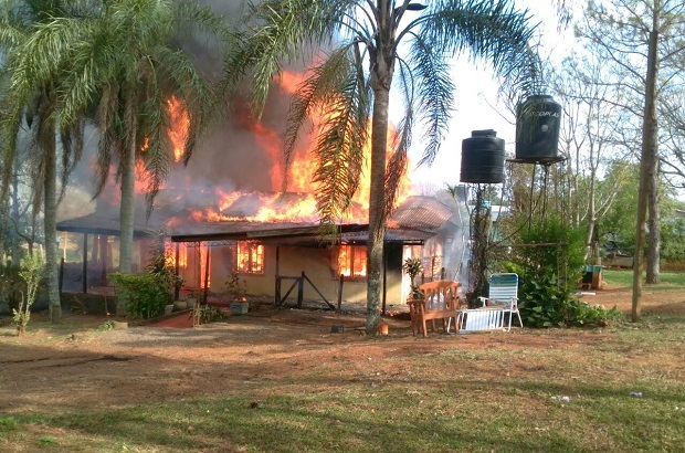 El fuego se desató alrededor de las 9:30 de este lunes en una casa situada en el kilómetro 964 de la ruta nacional 14, propiedad de una mujer de 48 años.Bomberos Voluntarios de Dos de Mayo junto al personal de la comisaría local trabajaron arduamente y sofocaron las llamas, que destruyeron en su totalidad la vivienda pero no provocaron daños a personas.Acorde a las primeras averiguaciones, el incendio se habría desencadenado a raíz de un cortocircuito.Fotos: Prensa Policía de Misiones