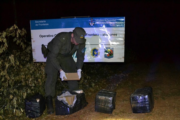 Gendarmería Nacional secuestró 96,604 kilogramos de marihuana que previamente habían sido descartados a la vera de la ruta provincial 6, a su paso por Santo Pipó. Fue cuando efectivos dependientes del Escuadrón 11 "San Ignacio" realizaban controles sobre la mencionada arteria, a la altura del Cerro Romero, y divisaron cómo el conductor de un vehículo Sedan de color rojo giró abruptamente para esquivarlos y huyó a gran velocidad en sentido contrario. El personal dispuso un seguimiento controlado y rastrillaje en la zona, que permitió detectando sobre la banquina cuatro bultos grandes cubiertos con nylon. Ante la presencia de testigos, se procedió a la apertura de los paquetes, que contenían 103 "ladrillos" de marihuana envueltos en cinta de embalar. Intervino la Fiscalía Federal de Oberá, que orientó el secuestro de los casi 100 kilos de droga y su resguardo en el depósito judicial del Escuadrón 11 de Gendarmería.Fotos: Prensa GN