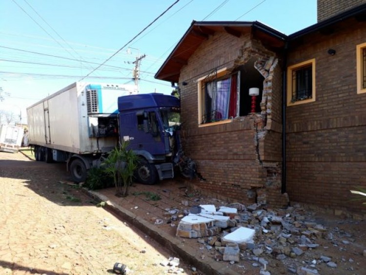 Un camión frigorífico fuera de control milagrosamente solo causó daños materiales, tras impactar contra una vivienda de Oberá. Sucedió alrededor de las 13 de ayer sobre calle Günther al 1.100. El vehículo, oriundo de Entre Ríos y repleto de carne vacuna, aparentemente sufrió el desbloqueo del freno de aire y terminó contra el inmueble de un hombre de 66 años.