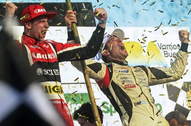 El binomio integrado por el chaqueño Juan Manuel Silva y el arrecifeño Juan Catalán Magni, con Ford, ganó este domingo los 1.000 kilómetros de Turismo Carretera (TC), en el marco de los festejos por los 80 años de la categoría y por la octava fecha del campeonato, en la prueba que se corrió en el autódromo porteño Oscar y Juan Gálvez.Al cabo de las 178 vueltas al trazado 12 de 5.641 metros, fueron escoltas el trinomio del saltense Guillermo Ortelli, el arrecifeño Valentin Aguirre, y el platense Diedgo Martínez, con Chevrolet, y a la dupla del rionegrino Juan Manuel Urcera y el lobense Mariano Altuna, con Chevrolet.Cuartos fueron el santafesino Facundo Ardusso y Tomás Urretavizcaya (Torino), de Chacabuco; detrás el quilmeño Esteban Gini y el bonaerense Jonathan Vazquez (Chevrolet), y el terceto del cordobés Juan José Ebarlin, el bonaerense Laureano Campanera, y el arrecifeño Marcos Di Palma (Chevrolet).Luego culminaron el misionero Carlos Okulovich y el cordobés Juan Barucca (Torino); el santafesiono Juan Marcos Angelini y el de Wilde, Luciano Ventricelli (Dodge); los lobenses Jonatan Castellellano y Gernónimo Tetti (Dodge); y el de Tres Algarrobos, Juan Martín Trucco, y Elio Craparo, de Chacabuco,.Ante unos 45 mil fanáticos, se largó la carrera y, rápidamente, Matías Rossi se adelantó con su Ford al Chevrolet de Guillermo Ortelli, pero el saltense se recuperó y lo pasó en el segundo giro.De atrás y como una trompa, el Dodge de Juan Martín Trucco pasó a la punta y, desde el último puesto de largada, el entrerriano Mariano Werner comenzó a pasar autos hasta posicionarse en los primeros lugares.Con las primeras paradas en boxes, se definieron quienes se perfilaban como candidatos al triunfo: Trucco, Silva, Werner, Ledesma y Urcera, pero por distintas circunstancias perdieron posiciones.Uno de los más relegados resultó Guillermo Ortelli cuando le cedió la conducción de su auto a Diego Martínez, quien hizo un trompo a dos vueltas de subirse al Chevrolet, y fueron tempranas las detenciones por problemas mecánicos de Mauro Giallombardo y Gabriel Ponce de León.El golpe de escena se dio sobre las últimas vueltas con el abandono de Werner y el retraso de Trucco, al mismo tiempo que Juan Manuel Silva y Guillermo Ortelli protagonizaron un final electrizante, y el chaqueño pudo ganar una carrera emocionante.Desarrolladas ocho fechas del campeonato de TC, está al frente de las posiciones Luis José Di Palma (Torino), con 262 puntos; seguido por Facundo Ardusso (Torino), con 255; Juan Manuel Silva (Ford), con 244.5; Gastón Mazzaccane (Chevrolet), con 236, y Jonatan Castellano (Dodge), con 228.5.Completan los diez primeros puestos, Juan Manuel Urcera, con 224.5 puntos; Christian Ledesma, con 219; Agustín Canapino, con 205.5, los tres con Chevrolet, y Juan Martín Trucco (Dodge) y Matías Rossi (Ford), con 202.5.La novena fecha del Turismo Carretera se llevará a cabo el 27 de agosto en el autódromo de Termas de Rio Hondo, en la provincia de Santiago del Estero.Fuente: Télam