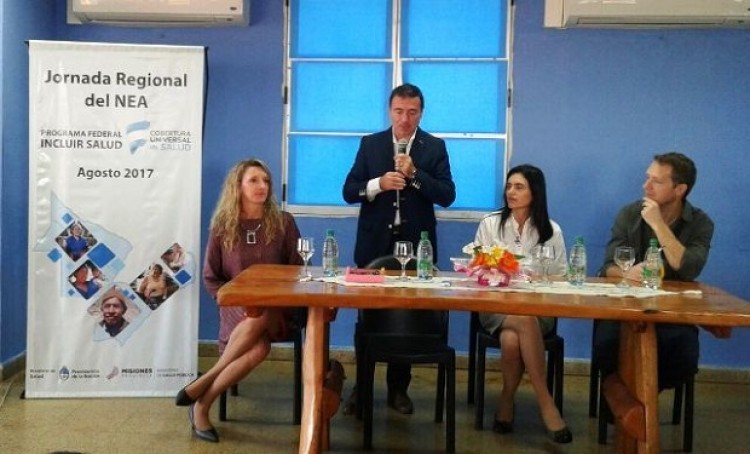 El encuentro estuvo encabezado por el Ministro de Salud Pública, Dr. Walter Villalba, el Ministro de Desarrollo Social, Dr. Lisandro Benmaor; la Coordinadora Provincial del Programa Incluir Salud, Dra. Dalila Bühl y la Dra. Silvia Moyano en representación del Ministerio de Salud de la Nación.El titular de la cartera sanitaria provincial agradeció la presencia de los referentes de Nación, Corrientes, Chaco y Formosa. “En la sencillez de este acto y de esta presentación se demuestra lo que es nuestra provincia, una provincia periférica, humilde, alejada del País central, pero que tiene como emblema justamente el federalismo, y el echo de tener un programa federal marca la posición que tomó el Ministerio de Salud de la Nación en fortalecer este tipo de esquemas y sobre todo en fortalecer la filosofía de trabajo en conjunto”.“Para quienes nos visitan les cuento que nosotros tenemos una Salud Pública que representa casi el 16 % del presupuesto de la provincia, realmente hay una fuerte intensión de estado provincial en poner a la salud como tope en la agenda, como una política de estado que viene creciendo año a año.La filosofía del estado provincial es tomar decisiones permanentemente pensando en el que mas lo necesita, nunca uno se equivoca cuando tiene que tomar una decisión difícil y favorece al que mas lo necesita, por eso es importante que de aquí se lleven esa concepción de trabajo. También que nos den a nosotros las experiencias que traen de afuera, para que aprendamos cada día más, que se lleven nuestras experiencia humilde, que se lleven parte de nuestra gestión que creo que es realmente buena, que la juzguen, que nos ayuden a mejorar, por sobre todo que sepan que en esta humilde provincia alejada, vamos todo los días fortaleciendo los derechos inclusivos, que creemos que tienen que tener las políticas sociales. No es lo mismo para un estado administrar recursos desde la riqueza con un producto interno alto per cápita como lo pueden tener cuatro distritos como son Capital Federal, provincia de Buenos Aires, Córdoba o Santa Fe, que administramos en provincias periféricas como las nuestras como Formosa, Chaco, Corrientes y Misiones. Por eso es bueno que vean como nos manejamos aquí, cuáles son nuestras carencias para que nos ayuden a transmitir algunas de ellas a nivel central y por supuesto conseguir la mejor solución para nuestros titulares de derecho del Incluir Salud.Del Ministerio de Salud de la Nación participaron la Lic. Maria Custore y el Dr. Gustavo Montenegro. Participaron de Chaco la Subsecretaria de Coordinacion de Salud de Chaco, Contadora Gabriela Youluk, el Coordinador del Incluir Salud de Chaco, Fabian Curienzo junto a su equipo de trabajo, la Coordinadora de Formosa, Dra. Juana Canteros y su equipo y la Coordinadora de Corriente, Contadora Melisa Donich..La Coordinadora provincial del Programa Federal Incluir Salud Misiones, Dra. Dalila Bühl remarcó que los dos ejes de trabajo de la jornada fueron consensuados con las provincias del NEA, “ temas que tenemos en común y que queremos charlarlos, ver, que dificultades tiene cada provincia y que cosas ya tienen resultados y que nos pueden servir a las otras que aun no las tenemos, uno te los temas que queremos hablar es: las prestaciones de discapacidad como eje del programa. Uno de los temas es discapacidad, y el otro circuitos administrativos de gestión”.
