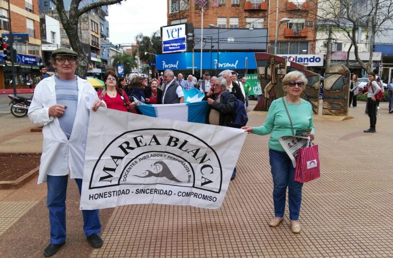 Jubilados de Marea Blanca volvieron a marchar en la Plaza 9 de Julio