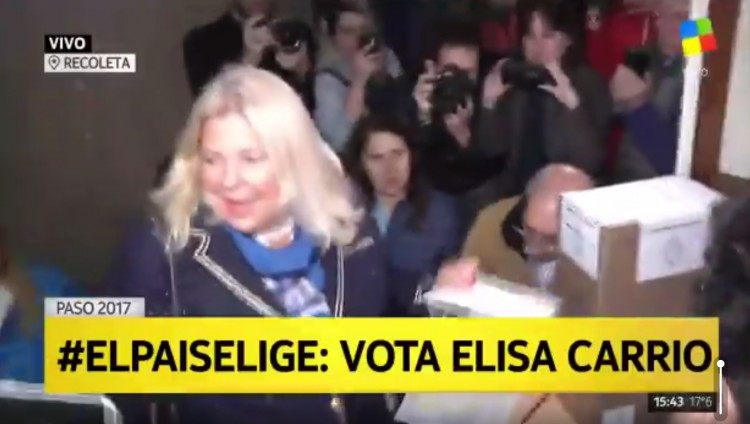 "Está todo tranquilo", dijo la actual diputada en declaraciones a la prensa al concurrir a votar en la Escuela 3 Onésimo Leguizamón, en el barrio de Retiro, donde la recibieron militantes políticos que reclaman la aparición con vida de Santiago Maldonado. Ante las preguntan a gritos de los militantes por Maldonado -a quien se lo habría llevado la Gendarmería el último día que fue visto- Carrió optó por no responder y sólo atinó a decir: "Está todo bien, no hagan caso". "Estoy tranquila, comí asado, estuve con el Presidente", dijo Carrió sobre cómo había transcurrido el domingo. Al ser consultada sobre si estaba confiada en una victoria del oficialismo en toda la Argentina, Carrió respondió: "No miro las encuestas. Estamos muy bien en toco el país".<p lang="es" dir="ltr"><a href="https://twitter.com/hashtag/PASO2017?src=hash">#PASO2017</a> > Votó Elisa Carrió: "Comí asado al mediodía" <a href="https://twitter.com/hashtag/ElPaisElige?src=hash">#ElPaisElige</a> en vivo > <a href="https://t.co/lo85FH1Olk">https://t.co/lo85FH1Olk</a> <a href="https://t.co/rEdRhZF7Af">pic.twitter.com/rEdRhZF7Af</a></p>— América TV ???? (@AmericaTV) <a href="https://twitter.com/AmericaTV/status/896806304613670912">13 de agosto de 2017</a>u000AFuente: Agencia de Noticias NA