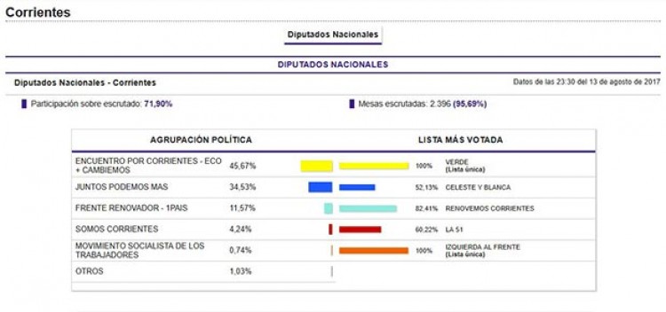 Los festejos se concentraron en la sede de la Unión Cívica Radical (UCR), tras conocerse los guarismos que ubican en primer término a la alianza oficialista, Encuentro por Corrientes+Cambiemos, con más del 46 por ciento de los votos de la elección primaria para diputados nacionales, con el 86 por ciento de las mesas escrutadas.Allí, el primer mandatario provincial, junto a los candidatos a diputados nacionales, Estela Regidor, Sofía Brambilla y Alfredo Revidatti y el candidato a Gobernador que competirá en las provinciales de octubre, Gustavo Valdés, destacó una vez más la alianza “Nación-provincia-municipio”.“Hoy, 13 de agosto, el pueblo de Corrientes ha dicho que este es el mejor camino para seguir transitando juntos, la Nación, la provincia y municipios”, remarcó Colombi.En tanto, criticó a la oposición a los que calificó como “pseudos dirigentes políticos que son el resabio del kirchnerismo” y añadió que “como frente, les dimos una paliza y candidato a candidato, les quintuplicamos los votos”.“La Nación necesita que los acompañemos con más legisladores nacionales, para equilibrar las fuerzas políticas y poder ayudar al Presidente (Macri) en las reformas que necesitamos, porque están demoradas por falta de acompañamiento legislativo”, dijo el gobernador de Corrientes.Finalmente, instó a que “redoblemos el esfuerzo y asumamos el compromiso y responsabilidades que nos competen”, en pos de volver a triunfar en los comicios provinciales del 8 de octubre, para elegir Gobernador y en las legislativas nacionales del 22.Fuente: Agencia de Noticias Télam