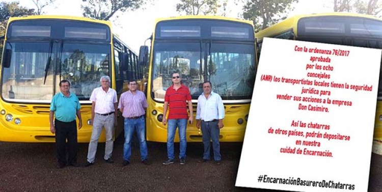 El pulpo sigue creciendo alimentado por su voracidad. Mientras aplica boletazo tras boletazo, implacable con los usuarios posadeños, extiende sus redes empresarias hacia otros destinos.En los últimos días, hubo versiones de que el Grupo Z quiere hacer pie en Encarnación y quedarse con el negocio del transporte público de pasajeros. Algunos en esa ciudad, se animan a afirmar que ya tiene sociedad con una de las empresas locales y eso le permitiría entrar de lleno al rubro.Los usuarios encarnacenos ya están al tanto de estas versiones y se están organizando en foros y redes sociales para rechazar la avanzada del monopolio posadeño. “No queremos que nos llenen de chatarras”, afirman en varios grupos de usuarios de Facebook, en alusión a los colectivos viejos que dejaron de circular en Posadas y empezaron a andar este año en la vecina ciudad. Es que las unidades amarillas, que ya cumplieron un ciclo en las calles posadeñas, estarían cruzando el Paraná para “renovar” la vieja flota de coches destartalados que todavía prestan servicio a los hermanos encarnacenos. Y la gente se enardece porque exige un servicio de calidad. No quieren el desecho de otras ciudades. El malestar de los ciudadanos apunta, también, contra el Concejo Deliberante local, conocido como Junta Municipal, dominado por los colorados opositores al actual intendente Luis Yd. Los concejales otorgaron el año pasado una extensión directa de la concesión a los actuales empresarios que prestan el servicio en Encarnación, sin cumplir con el requisito de convocar a una licitación para que puedan participar otros empresarios interesados. Los actuales están cuestionados por la mala calidad del servicio. En lugar de exigirle que mejoren, se los premió con varios años más de negocios en el transporte. Esa ordenanza, redactada a medida, incluye que las empresas incorporen unidades mejores a las que están circulando en la actualidad. Pero esas unidades no son nuevas, sino que ya habrían cumplido varios años de servicio en la Capital misionera.Ahí es donde cobra fuerza la versión de que el Grupo Z ya vendría haciendo negocios con las empresas encarnacenas y prepararía el terreno para un desembarco. Un alto funcionario de la Municipalidad de Encarnación comentó a PRIMERA EDICIÓN que “el rumor está instalado entre la gente, que la empresa monopólica de Posadas tiene una sociedad con una empresa local y ahora quiere acaparar todo el servicio”.Las actuales empresas brindan el servicio desde hace 50 años, sin documentación respaldatoria. Actualmente existen en la ciudad un total de 78 unidades de transporte público, pertenecientes a cuatro diferentes empresas. Del total, 22 son vehículos de menos de 10 años, el resto tiene entre 30 y 40 años de servicio, son obsoletos.La ordenanza polémicaEn junio, los ocho concejales municipales colorados votaron por darle vida a los “buses chatarra” de hasta 20 años de antigüedad, que circularán por siete años más por las calles de la moderna Encarnación. Esa ordenanza implica una renovación parcial de las unidades. Pero como se hizo en forma directa, sin licitar, el Intendente vetó la norma y envió otro proyecto para convocar a una licitación nacional.Los concejales “cajonearon” el proyecto y no lo trataron desde entonces. El Intendente acudió a la Contraloría General de la República de la Nación, organismo que le dio la razón atento a que todo servicio público se debe contratar previo a una licitación.Rechazan al monopolioLa “Coordinadora de usuarios del servicio de transporte público de pasajeros de Encarnación” denunció en su red social de <a href="https://web.facebook.com/EncarnacionCiudadDeChatarras/">Facebook </a>que la ordenanza polémica “sirvió para mantener la seguridad jurídica y hacer un contrato directo con las empresas de transporte”. “Esta ordenanza aprobada por la Junta fue aprovechada por dos empresas de transporte de Encarnación: línea 3 y línea 5, que vendieron ya parte de sus acciones a una empresa privada extranjera “Don Casimiro” de Argentina, que entrará a Encarnación a monopolizar otra vez el servicio”, expresaron en esa red social.Los concejales que aprobaron la ordenanza alegan que no quieren dejar sin trabajo a unas 500 familias que viven del transporte público. “Por su parte, el abogado Alfredo Chamorro Thompson, empresario de la línea 4, alega en los medios locales que fue ‘traicionado por sus colegas empresarios’ y que ahora esta empresa Don Casimiro ‘comerá’ a las pequeñas empresas locales que quedan”, señalaron en Facebook. “Queremos transportes públicos de calidad. Mejoramiento integral del sistema. No más parches ni monopolios. Queremos solución integral”, advirtieron los activistas encarnacenos.“Con la ordenanza 76/2017 aprobada por los ocho concejales (ANR) los transportistas locales tienen la seguridad jurídica para vender sus acciones a la empresa Don Casimiro. Así las chatarras de otros países, podrán depositarse en nuestra ciudad de Encarnación”, denunciaron en otra publicación.“Nos ‘jodieron’ bien grande y ahora Encarnación con Don Casimiro se convierte en el basurero de Argentina y Brasil”, se quejan.La oportunidad del grupo ZLa intención del Gobierno encarnaceno es que se convoque a una licitación nacional, lo cual dejaría afuera de la compulsa al ambicioso grupo posadeño. Sin embargo, los encarnacenos creen que así como hicieron para quedarse con el negocio del tren internacional que une esa ciudad con Posadas, también tendrán alguna estrategia a mano para entrar al transporte público local.“Las empresas locales están trayendo colectivos usados de Posadas, una de las empresas parece que ya vendió parte de sus acciones a los posadeños. Por eso la gente sospecha que los posadeños quieren entrar a la licitación por medio de la empresa encarnacena”, señaló el funcionario municipal consultado. “Hay vers