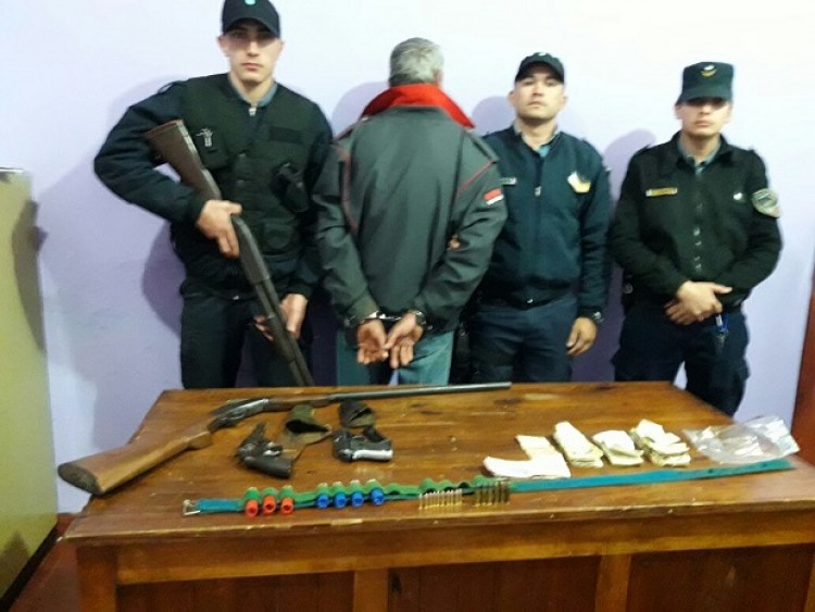 El alerta a la Policía llegó desde la Colonia 36, de la localidad de Apóstoles. Allí pobladores se ocultaron en sus casas al ver que una vez más su temible vecino, de 65 años, estaba efectuando disparos con armas de fuego al aire.Teniendo en cuenta la peligrosidad del dueño de casa y que su propia esposa era objeto de amenazas, los efectivos de la seccional Primera junto a unidades especiales Unidad Regional VII ingresaron al inmueble y redujeron al sujeto que empuñaba un revólver, además a pocos pasos tenía una escopeta y una pistola.Inmediatamente fue detenido y se incautaron un pistola calibre 22 (con diez cartuchos); un revólver calibre 38 (con 06 cartuchos); una escopeta calibre 16 (con un cartucho) en recámara y un cinturón con seis cartuchos de escopeta calibre 16. El hombre fue denunciado por su pareja, de 48 años, por las reiteradas amenazas y a su vez deberá comparecer ante la Justicia por la tenencia ilegal de las armas.Paralelamente se trata de establecer si este hombre proveyó de armas a malvivientes para la comisión de delitos en la zona.
