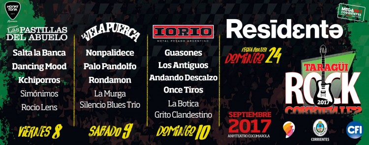 Se viene una nueva edición del festival del rock más importante de la región, organizado por el Instituto de Cultura de Corriente. donde además de la grilla colmada de referentes nacionales e internacionales del género, los grupos locales tendrán también un espacio preponderante en cada una de las noches, con igual técnica y cuidado que el resto de los artistas, revalorizando el trabajo de autogestión que con tanto sacrificio han realizado para sostener la trayectoria que los hizo partícipes del festival. "El evento generó movimiento, muchas bandas de toda la región creando, gestando, componiendo y esperamos consolidar ese impulso para con las correntinas. Compartir escenario con consagradas bandas y que trabajen en la oportunidad que esto les genera para trazar vínculos artísticos, con productores nacionales e internacionales del género es el mensaje para con nuestro mercado, que debe meterse en la consideración de la industria", señaló el presidente del Instituto de Cultura de la Provincia, Arq. Gabriel Romero Explicó además que a diferencia de años anteriores, para esta edición el Instituto de Cultura decidió priorizar a las bandas soportes de la provincia. Por lo que algunas ganadoras de los certámenes previos de años anteriores serán parte del timeline artístico del Festival. Bandas que subirán escenarioGrito clandestino: Se formó a mediados del año 2014 entre José Pablo Méndez (Conejo) en Bajo, Edgardo Sánchez en batería y Puma Tabossi en guitarra y voz, como una forma de dar continuidad a lo que fue “Séptimo hijo”, pero con mayor amplitud en lo musical. Se incorpora Mariano Ybarra como segunda guitarra, lo que consolida la formación. Tras la presentación en Goya en 2015, incorporan a Eduardo Gómez (también x Séptimo hijo) como cantante. Esta formación es la que consigue consagrarse, en un concurso, como telonera de Malón en un recital en Formosa. En el 2016 la banda vuelve a la formación original y queda seleccionada en el Pre Taragüi para compartir escenario con Rata Blanca y Malón. En ese momento, se conformó por José Pablo Méndez (Conejo) en Bajo, Edgardo Sánchez en batería, Mariano Ybarra 1ª guitarra y Puma Tabossi guitarra y voz. La Murga: es una banda de rock nacida en la ciudad de Goya en 1993 y radicada en la ciudad de Corrientes. La carrera de la Murga incluye 12 discos grabados en más de 20 años de carrera y recitales por todo el Litoral (Santa Fe, Chaco, interior de Corrientes, Formosa), y otros escenarios como los de Catamarca y Buenos Aires. En su música explora una diversidad de géneros y estilos en los que convergen el rock, el ska, el candombe y los ritmos latinos. Recientemente presentó oficialmente el 12º disco, llamado Resiste, grabado en 2015 en los Estudios MCL RECORDS Buenos Aires y mezclado por Mario Breuer, reconocido productor artístico de renombre nacional. Rocío Lens. A pesar de su juventud, Rocío Lens ha demostrado ser dueña de un talento inigualable y una potencia vocal única en la región, su presencia escénica y carisma natural quedaron expuestos en su reciente material discográfico, el primero que edita como solista, bajo el título “No me puedo quejar”. El disco, editado en Corrientes, está completamente integrado por composiciones propias, que cuentan con la colaboración de los grandes músicos que conforman su banda. Simonimos. La banda nace en Corrientes en el año 2013, a raíz de una convocatoria para el festival de rock de la provincia, Taragüi Rock. Luego de una exitosa presentación y de quedar seleccionados para la instancia superior del festival, en 2014 graban su primer material de estudio. Conformada por Simón Araya en voz, Elías Cochia en bajo, Juanfri Osuna en batería y Maxi Osuna en guitarra, Simonimos actualmente se encuentra en proceso de producción de su segundo disco, en el que explora un sonido propio, más maduro con respecto al primero. Silencio Bkues Trío. Es una banda de blues-rock de Corrientes Capital formada en septiembre 2013 por Damián “Chueco” Gauna en guitarra y voz, Mariano “Parru” Casco en bajo y voz y Juan Tomás “Puchito” Encinas en batería. Son músicos activos desde hace más de diez años en la escena rockera de la región y tocaron en incontables proyectos: Funky Leones, La Pequeña, Local 12, I AM LOCO, Quantum Quark, Tísicos, Porristas (Bs. As.), Franzo (Bs. As.), solo por nombrar algunos. Desde su primer show en el mítico Picasso Pub, deciden embarcarse en este proyecto de forma permanente, se ponen a ensayar, surgen invitaciones para tocar y salen a la ruta, habiendo realizado más de 100 actuaciones en la región, con buena recepción en los diversos escenarios que han recorrido: bares de rock, resto bares, festivales, recitales independientes y centros culturales. Además son los productores junto a la plataforma Ruidos del Monte del Festival “Añañay” que ya lleva 5 ediciones realizadas. Esta actividad permanente los hace vincularse de manera constante con el medio artístico de la región. La Botica. Es una banda correntina de hard rock con más de 10 años de presencia en los escenarios correntinos. La experiencia acumulada les permitió definir cada vez con mayor claridad su identidad, con un trabajo artístico específico y en desarrollo y crecimiento permanente en sus canciones. La banda liderada por Diego Esquivel logra plasmar canciones de puro hard rock; desde el inicio se puede advertir la potencia de la música; el protagonismo del bajo de Nicolás Lezcano y la batería de Atahualpa Romero. Los riff de la guitarra de Joaquín Dalmazzo son los atractivos de esta banda que sigue ampliando horizontes con trabajo firme y ganando espacio en cada vez más escenarios. Aquellos que aún no conocen a nuestros talentos locales pueden buscarlos en las redes sociales, y así estar listos para corear sus canciones en los días del festival. EntradasLas entradas para todas las jornadas (8,