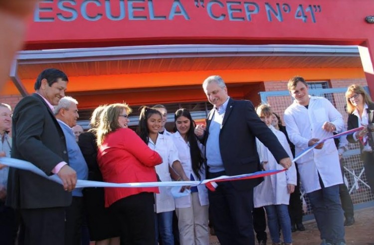 Las autoridades, en conjunto con alumnos, docentes y la comunidad que involucra al CEP Nº41, se congregaron en la tarde del martes para vivir un momento histórico para todos, el de poder contar con un edificio propio que alberga a cientos de jóvenes estudiantes provenientes de Campo Grande y de la capital del té. Hasta hace un tiempo se dictaban las clases en las instalaciones de la Escuela N°244.El Intendente Ríos manifestó que, “es un día muy importante para nosotros por la presencia del gobernador de la provincia y el acompañamiento de su gabinete, haciendo referencia las viviendas que se entrego para que nuestros productores puedan vivir dignamente ahí está la política de acompañamiento cerca de la gente” en las mismas líneas manifestó que. “con gran alegría inauguramos nuevo establecimiento educativo trabajando juntos entre todos, directivos docentes, municipios y gobierno de la provincia aunando criterios y esfuerzos esta es la política que los misioneros debemos defender, no me quedan más que palabras de agradecimientos” finalizo Ríos. Por su parte el gobernador Hugo Passalacqua destacó que la prosperidad de un pueblo es posible mediante la educación y aseveró que "el futuro de Misiones se libra en las aulas". Además indicó que si Misiones es próspera es por mérito del trabajo en conjunto de una comunidad unida y que "la gente sabrá castigar a quienes con mezquindad quieran llevar agua para su molino". "Somos servidores públicos y nuestro compromiso es trabajar juntos por la gente", remarcó el mandatario provincial.