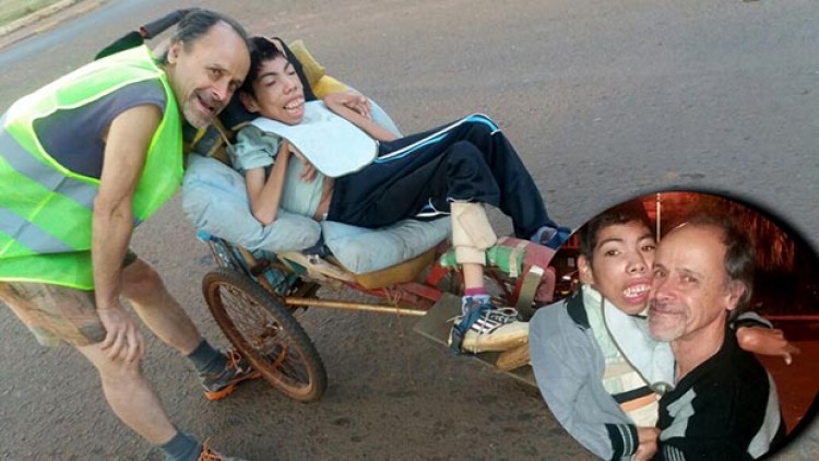 Verlos salir a trotar es casi una postal de Eldorado. No hay nada que los detenga. En esos momentos juntos son felices. Horacio conoció a Manu cuando era solo un bebé en una sala de hospital de esta ciudad. Junto con su señora decidieron adoptarlo y criarlo en el seno de una familia donde amor no le iba a faltar. Incluso ante los contratiempos de la vida lograron mantener esa promesa. “Si tuviera que volver a adoptar, elegiría a un niño discapacitado”, reconoció papá Horacio.Horacio Goytia es el padre adoptivo de Manu, un joven de 23 años que sufre de parálisis cerebral y necesita de sus padres, Horacio y Claudia, para sobrevivir. El matrimonio luchó mucho por tener un bebé. Se recorrieron cientos de juzgados esperando una respuesta positiva. Respuesta que recibieron en Misiones, provincia a la que llegaron hace 30 años. Un día les avisaron de Nuria, una beba que los esperaba en el Samic. La buscaron y volvieron a casa con ella para formar esa familia que tanto habían anhelado. “Pero no estábamos completos”, recordó Horacio en una charla con PRIMERA EDICIÓN. “Buscábamos un hermanito”. Sus deseos se hicieron realidad porque al poco tiempo volvieron a recibir un llamado con la noticia de que había un niño que los esperaba. “Claudia lo fue a ver y lo conoció a este morocho, a Manuel. Él estaba muy mal. Hacía tres meses que esperaba”, aseguró Horacio. En aquel entonces Manu “lloraba permanentemente, histérico, porque hacía tres meses que estaba solo en una sala de neonatología. Sin amor, porque no había nadie que lo atendiese. Fue muy duro”, dijo su papá. Claudia le relató este cuadro a Horacio y “yo le dije ‘si a vos te parece, nos largamos’”. En este punto la historia se vuelve un poco más dura porque “nos engañaron, nunca nos dijeron qué le pasaba. No nos dieron la historia clínica. Me emociona hasta el día de hoy porque Manu no era querido. Todo el mundo le dio vuelta la cara”, dijo Horacio.Cuando volvieron a su casa el comportamiento de Manu no mejoraba. “Seguía duro como una piedra. Lo queríamos sentar en una sillita pero apoyaba la cabeza, la nuca y la punta de los pies y no se podía doblar, rígido totalmente”. Nadie les decía nada. Por lo que empezaron a averiguar y en Posadas les dieron el verdadero diagnóstico: Manu sufre de parálisis cerebral, es cuadripléjico y espástisco. “En la Defensoría nos dieron la posibilidad de devolverlo pero él no es una plancha que está descompuesta y se devuelve. Dios quiso que nos tocase”.Seguir adelantePese a esta situación, el matrimonio no se dio por vencido. Con ayuda de profesionales se propusieron mejorar la calidad de vida de Manu y lograron que, pese a su discapacidad, pueda mover los pies y caminar con ayuda. Con el tiempo Horacio y Claudia decidieron terminar su relación de pareja. Pero los unen sus hijos. Especialmente Manu por los cuidados que demanda. Él vive con Claudia pero Horacio los busca casi diariamente para ir a dar una vuelta en un triciclo que armó exclusivamente para Manu. “Es una herramienta que le ha facilitado tener su espacio junto a su papá en un momento de ejercitación. Un chico de su edad no quiere estar dentro de la casa y ver televisión. Quiere tener contacto con el exterior, por eso vamos a la plaza a sentir el aire y la gente lo saluda. Él quiere vivir”.Horacio tiene 67 años, es ingeniero industrial y docente recientemente jubilado. Pero más allá de los títulos, es un hombre agradecido. “Dios me puso en esta situación. Me costó mucho asumirla pero hoy estoy agradecido porque me ha hecho ver a Dios. Si tuviera que volver a adoptar, elegiría a un chico discapacitado porque es una escuela fenomenal. Él a mí me da amor”.