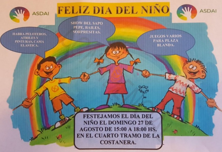 Desde Asdai pidieron que las familias concurran con sus hijos para poder realizar la actividad programada. Las disertantes serán la pediatra Dra. Silvina Farras y las nutricionistas Valeria Da Luz y Cintia Cabral, todas de Posadas.Los temas a tratar serán alimentación saludable y alimentación de niños con síndrome de Down. Se dará un taller informativo para padres y se tomará peso y talla a los niños. Será en el Salón Mayor del Palacio del Mate, ubicado en calle Rivadavia 1846. Consultas al (0376) 154696210.El domingo, todos a la CostaCon peloteros, atriles, pintura, cama elástica, el Show del Sapo Pepe, bailes, sorpresitas y plaza blanda, ASDAI continuará los festejo en la Costanera el domingo 27. Será de 15 a 18 horas en el cuarto tramo.