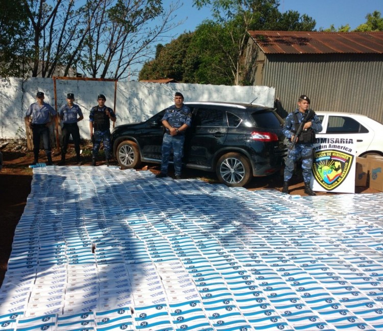 Con orden del juzgado de Instrucción Uno, este viernes en barrio Jardín los efectivos de la comisaría de Jardín América allanaron una vivienda curiosamente con las expensas al día pero sin ocupantes excepto por las madrugadas, cuando se perciben llamativos movimientos de personas y vehículos. La orden judicial respondió primeramente al esclarecimiento de hechos delictivos.Una vez dentro del inmueble los uniformados recorrieron las habitaciones y hallaron las primeras 2 mil gruesas de cigarrillos distribuidas en cajas. Posteriormente a un costado del inmueble se detectó la presencia de un Peugeot 4008 en cuyo interior había 1600 gruesas de cigarrillos. Todo el cargamento de cigarrillos (3.500 gruesas) sin aval aduanero correspondiente.