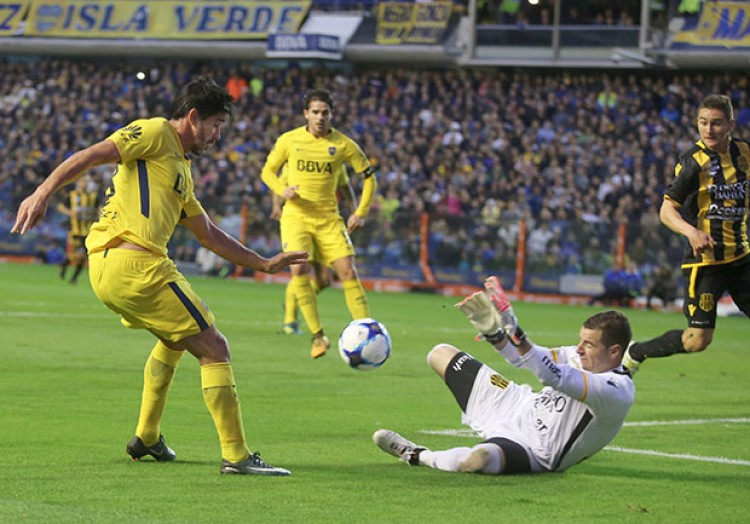 Darío Benedetto por duplicado, a los 7 minutos del primer tiempo y a los 41 del complemento, el segundo de penal, y Pablo Pérez, a los 41 de la etapa inicial, marcaron los goles del elenco boquense.Con la conducción de Fernando Gago y Pérez, y el poder de gol de Benedetto, los "xeneizes" iniciaron la nueva temporada con una convincente presentación.Si bien el vigente campeón mantuvo la base, debutaron el colombiano Edwin Cardona, que mostró destellos de su talento, y el experimentado defensor Paolo Goltz, aunque este formó parte de una última linea que casi no pasó sobresaltos.En tanto, lo de Olimpo fue muy pobre, con un mediocampo que casi nunca pudo cortar el circuito de juego local y con muy poco peso en la ofensiva.Boca impuso su superioridad desde el inicioEl elenco local intentó imponer su juego desde el inicio y en apenas siete minutos se puso en ventaja, en una jugada iniciada por Gago, que habilitó a Pavón con un preciso pase largo, para que luego el punta cordobés desborde y lance el centro al corazón del área chica, donde Benedetto apareció para empujarla al fondo de la red.Con la tranquilidad del 1-0, Boca siguió dominando las acciones, moviendo el balón de lado a lado, con mucha paciencia, buscando huecos en la última línea de Olimpo, que no podía reaccionar.Cuando se jugaban 17 minutos, Leonardo Jara estuvo flojo en la marca y fue superado por Maximiliano Fornari, pero este optó por rematar al arco, débil, en lugar de buscar a dos compañeros que estaban mejor ubicados, dilapidando una de las pocas incursiones claras de Olimpo en ataque.Cinco minutos más tarde, Gago mostró una vez más su jerarquía con otra habilitación profunda, esta vez para Benedetto, pero el "Pipa" no remató bien y el balón se fue por arriba.A los 29, y cuando Boca era amplío dominador, entre Matías Cahais y Cristian Nasuti sacaron en la línea de gol un disparo del colombiano Cardona, tras una gran jugada combinada entre Gago y Pérez.Con el correr de los minutos, a Olimpo se le hacía cada vez más difícil resistir los embates "xeneizes" y a los 36 el arquero Adrián Gabbarini evitó una nueva caída de su valla, tapando un remate de Pérez, luego de una pared entre Cardona y Pavón.Pero el exguardametas de Independiente no pudo hacer nada para evitar que el siguiente derechazo de Pérez, a los 41, se convierta en gol, ya que la pelota se desvió en Nasuti y lo descolocó. La jugada se había iniciado con otro gran pase de Gago, a Pavón, por derecha, y el delantero luego habilitó a Pérez con un centro atrás. Segundo tiempo sin sobresaltos para BocaYa en el complemento, Boca bajó el ritmo en los primeros minutos y le permitió a Olimpo hacerse del balón, pero el conjunto "aurinegro" siguió mostrándose muy limitado, sin herramientas para llevar peligro a la valla defendida por Agustín Rossi.Pasados los 15 minutos, Boca de a poco retomó el dominio de las acciones, pero su juego se hizo lento y le faltaba cambio de ritmo, sobre todo en los últimos metros en ofensiva.Ante esto, Gago, uno de los puntos más altos del local, probó desde media distancia, a los 33 minutos, pero su derechazo salió a dos metros del palo derecho.Cerca del final, a los 38 minutos, el colombiano Frank Fabra cortó el balón en un tiro libre de Olimpo, cedió rápido para su compatriota Cardona, este puso un pase largo para Benedetto, quien hizo una larga corrida y fue derribado por Cristian Villanueva, cometiéndole penal.El propio Benedetto se hizo cargo de la falta, marcando su segundo gol y el tercero de Boca, con un remate cruzado, que no engañó al arquero, pero superó la estirada de Gabbarini, quien había elegido bien su derecha. Fuente: Agencia de Noticias NA