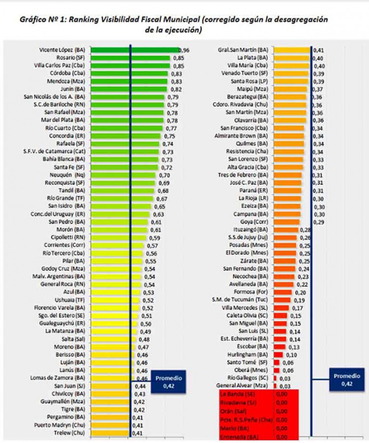 Las tres Intendencias más grandes de Misiones: Posadas, Oberá y Eldorado, están señaladas por su bajo nivel de transparencia de acuerdo a un ranking elaborado por el Instituto Argentino de Análisis Fiscal (IARAF) donde se revisó un total de cien municipios, eligiendo a los más grandes del país, que representan el 59% de la población total.El acceso de la ciudadanía a la información de las cuentas públicas permite que los ciudadanos, empresas y diferentes agentes económicos y sociales puedan evaluar con precisión la forma de gestión, de administración y el uso de los recursos públicos por parte de sus representantes. El Instituto elaboró un “indicador de visibilidad” revisando cada uno de los sitios webs oficiales de los municipios. La información requerida se agrupa en los siguientes rubros: Presupuesto, Ejecución Presupuestaria, Planta de Personal, Deuda Pública, Licitaciones Públicas y Normativa Tributaria. En estos aspectos, los municipios misioneros se ubican entre los peores.En el relevamiento se contempla que se trate no solo de la información más actualizada posible, sino también que incluya datos de períodos anteriores.Los relevamientos se realizaron hasta el día 31 de marzo del 2017, sin ser tenida en cuenta toda información publicada con posterioridad.El índice para cada municipio puede variar entre 0 y 1, siendo más visible un gobierno cuanto más cercano a uno se encuentre su indicador. Los que están más cerca del cero son los menos transparentes. Oberá es el peor de los misioneros, con 0,06 de calificación está en el puesto 91, considerando que el puesto cien es el menos transparente. Eldorado recibió 0,25 de calificación (puesto 76) y Posadas con la misma calificación de 0,25 se ubica en el puesto 75.El mejor desempeño en el Indice de Visibilidad de Información Fiscal lo presenta el municipio de Vicente López, con un indicador de 0,96, muy cercano al valor máximo de 1. Le siguen Rosario y Villa Carlos Paz, con un indicador de 0,85.Córdoba, Mendoza, Junín, San Nicolás de los Arroyos, San Carlos de Bariloche, San Rafael, Mar del Plata y Río Cuarto también se destacan como las jurisdicciones de mayor visibilidad fiscal, con indicadores que superan el valor de 0,77.En el otro extremo los municipios menos transparentes, con indicador igual a cero, vale decir que no publican información fiscal relevante, son La Banda, Rivadavia, Orán, Presidencia Roque Sáenz Peña, Merlo y Ensenada.Comparando la medición actual con relevamientos realizados en años anteriores, se aprecia en términos generales que, año a año, el indicador promedio ha ido evidenciando ligeras subas, acumulando un crecimiento del 50% respecto al valor del año 2011 (que fue del 0,28).La jurisdicción que mayor mejoría evidenció en la última medición fue José C. Paz, junto con la ciudad de San Juan. José C Paz en el año 2015 presentaba un indicador igual a 0, mientras que actualmente su IVIF es de 0,31. En tanto, el IVIF de San Juan pasó de 0,13 a 0,44.Corrientes, Lomas de Zamora y San Pedro son casos que también se destacan por haber incrementado sus indicadores más de 25 puntos.En el otro extremo, se ubica el municipio de San Salvador de Jujuy, que pasó de tener un indicador de 0,56 en 2015 a uno de 0,26 en 2017. Alta Gracia y Cipolletti son casos que también experimentaron caídas de más de 25 puntos en sus indicadores.