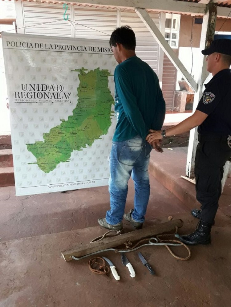 Desde hace tiempo el dueño del campo tenía sospechas de que le estaban robando. Entonces, solicitó el apoyo de la Policía y radicó la denuncia. Fue así que comenzó una investigación sobre abigeato en un campo situado en el lote 41. Los efectivos de la comisaría de Andresito montaron vigilancia en los alrededores de la estancia y se percataron de las actividades ilícitas del empleado infiel, cuidador del lugar.Éste peón lejos de “cuidar” el campo lo que hacía sistemáticamente era robar, faenar y vender los vacunos de su patrón.En las últimas horas los uniformados detuvieron al involucrado quien tenía consigo cuchillos, sierras de cortar carne, aparejos, cuchillos de carnicería y sogas utilizados para la faena.
