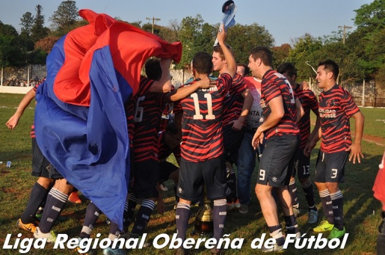 En la tarde de este domingo se jugó la gran final del Torneo Apertura 2017 “César Cardozo” del fútbol obereño, donde Mojomi de Santa Rita logró quedarse con el máximo trofeo tras empatar sin goles con Olimpia-San Antonio. Fue un gran partido el que protagonizaron ambos conjuntos, pero al final no lograron romper el marcador y terminaron empatando 0 a 0, lo cual hizo valer el resultado del partido de ida donde Mojomi había logrado un resultado favorable de 2-0.Los de Manuel Dutto hicieron bien su trabajo, defendieron la ventaja que tenían y no se desesperaron. En tanto, los de Alfredo Forster buscaron presionar desde el primer minuto sabiendo que llegaban en desventaja, aunque no lograron romper la barrera que la visita había armado atrás. Aunque hubo llegadas por parte de ambos rivales, ninguna fue de peligro. La más clara la tuvo MoJoMi, luego de una arremetida de Brahian Díaz por izquierda, dejando a varios rivales atrás y peleando por seguir con el balón, pero perdiendo ante la salida de Matias Salinas que pierde la tenencia y en el despeje le queda a Celso Carvalho quien de media vuelta prueba por arriba del arquero y la pelota da en el travesaño.En el complemento, Alfredo Forster cambia su esquema táctico con tres atrás, apostando a poner todo en ataque. Pero ese cambio le dio espacios a Mojomi, que de contra castigaba con las subidas de Díaz, quien tuvo varios mano a mano pero poca puntería. El pitazo final desató el festejo de la visita, que por primera vez logra un campeonato con el agregado de su vuelta a los torneos de la Liga Regional Obereña de Fútbol después de varios años de ausencia.En la cancha, el presidente de la Liga, Juan Carlos Rossberg, hizo entrega de los premios a la valla menos vencida (Racing de Villa Svea) y al goleador del torneo (Leandro Osorio, del mismo equipo, con 11 tantos), mientras que el vicepresidente Raúl Benítez entregó el trofeo al subcampeón Olimpia-San Antonio y Rossberg al flamante campeón, Mojomi, que también recibió la Copa Challenger de manos del presidente de River de Villa Bonita, Marcelo Goncalvez.