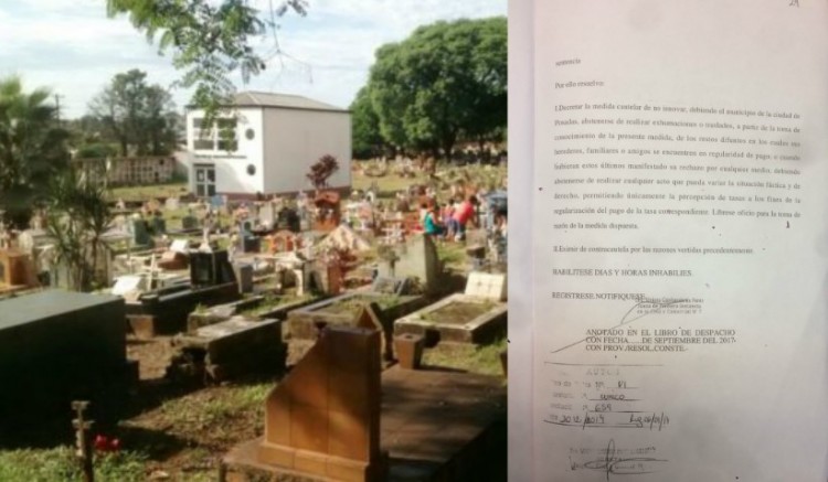 Más adelante, el documento al que accedió este Medio, indica que “(la comuna) deberá abstenerse de cualquier acto que pueda variar la situación fáctica y de derecho, permitiendo únicamente la percepción de tasas a los fines de la regularización del pago de la tasa correspondiente”.Vale recordar que los familiares de los difuntos, cuyos restos descansan en La Piedad, habían expresado su rechazo a la decisión de la Municipalidad que había comenzado a realizar las exhumaciones, amparados por una ordenanza que lleva muchos años y que nunca se había aplicado. Incluso llegaron hasta el Concejo Deliberante donde plantearon su malestar por la situación que estaban atravesando y<a href="http://www.primeraedicion.com.ar/nota/255119/recurso-de-amparo-para-que-cesen-exhumaciones-en-la-piedad.html" style=""> presentaron un recurso de amparo</a>.
