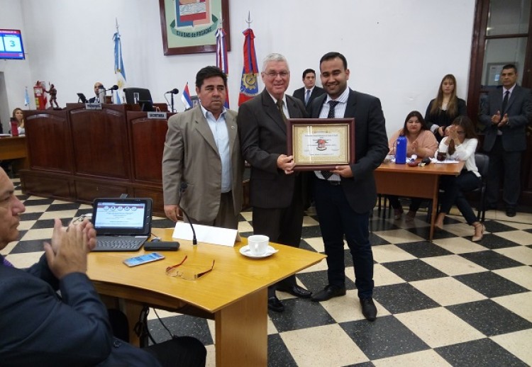 En la 22ª sesión ordinaria del Concejo Deliberante de Posadas, celebrada este jueves, los ediles reconocieron los 25 años de trayectoria profesional del conductor radial y televisivo Roberto Acosta. En su proyecto de declaración, el presidente del cuerpo, Alejandro Velázquez, resaltó su gran trabajo como conductor, productor radial y televisivo en la región y por su eterna tarea diaria de defender las raíces culturales de Misiones. Es por ello que, junto al presidente de la comisión deliberativa de Cultura, Educación y Deporte, Daniel Amarilla, le hicieron entrega de un diploma de reconocimiento. Acosta comenzó su actividad en junio de 1992 con la producción y conducción del programa “Ramos Generales” por Canal 12. A su vez, realizó el ciclo radial "Buenas noches Argentina" por LT4 y pasó por diversas emisoras de FM locales.Fue organizador junto a Esteban Abad del Primer Encuentro de valores del Festival Nacional de la Música del Litoral. Además, trabajó como productor discográfico de Alberto “Tucho” González, de los ganadores del Festival Folklórico de Misiones “Mi Tierra Roja” y en la recopilación en CD de los temas de Alcibiades Alarcón. Fue integrante fundador de la comisión permanente de homenaje al poeta misionero Alcibíades Alarcón, fundador y presidente del Movimiento Cultural Misionero, así como realizador, organizador y animador de numerosos festivales, peñas y encuentros folclóricos en toda la provincia.El Festival "Mi Tierra Roja" existe gracias a su iniciativa y dedicación.