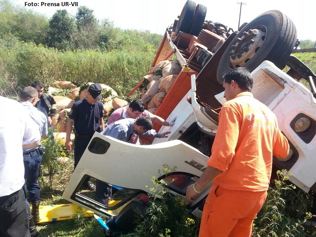 Varios lesionados de consideración dejó alrededor del mediodía de este jueves un siniestro vial registrado sobre la ruta provincial 201 y protagonizado por un camión cargado de raídos de yerba, con cinco personas a bordo.El episodio ocurrió -por motivos que se investigan- en la mencionada arteria provincial, en inmediaciones de la rotonda hacia la localidad de Tres Capones.El camión Ford Cargo transportaba la carga de yerba mate en sentido Concepción de la Sierra-Apóstoles, conducido por José Raúl P., de 54 años y domiciliado en Colonia Unión de Garruchos (Corrientes).Dentro de la cabina viajaban también César C. (17), Jorge C., Jorge Elías P. y Juan P., todos ellos mayores de edad y domiciliados en el barrio Irigoyen. La peor parte se la llevaron Juan y César, quienes quedaron aprisionados entre los hierros retorcidos del habitáculo y debieron ser rescatados por personal de bomberos de la Unidad Regional VII de la Policía, con asiento en Apóstoles.Una vez socorridos todos, fueron trasladados al hospital de esa misma ciudad para su atención. Al menos dos de los heridos presentan aparentemente lesiones de consideración, mientras que el conductor del rodado resultó ileso.
