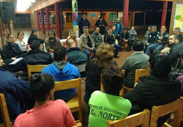 Como se había acordado, que las reuniones generales de los Foros de Seguridad de Oberá se realizarían en los barrios, se llevó a cabo la primera reunión en el CEP 56 del barrio Norte. Además de los integrantes del Foro anfitrión, estuvieron presentes autoridades comunales, entre ellos el intendente a cargo Ariel Chaves, personal de la Unidad Regional II de Policía, integrantes de la Justicia, del Consejo de Administración de la CELO y de otros Foros de Seguridad, comisiones vecinales y particulares.Para los anfitriones, la convocatoria fue buena, aunque lamentaron encontrarse al otro día con daños en el lugar de reunión. “Parece que este tipo de reunión molesta, no les gusta el cambio, no les gusta que haya iluminación, que se mejore la situación. Eso no quita las ganas de trabajar con más fuerzas, porque si molesta significa que algo estamos haciendo. La vez anterior nuestra reunión fue en el templo Asamblea de Dios y esa noche también entraron, nunca había pasado nada. Es como que nos quieren dar un mensaje”, manifestó a La Radio, Daniel Ferreira, titular del Foro de Seguridad del barrio Norte.Sobre la reunión destacó que “fue muy linda, queremos que los vecinos sepan que las autoridades están dispuestas a escuchar y trabajar en conjunto, hay una nueva generación que se acerca a los barrios, por ahí no se llega de inmediato con los pedidos pero de a poco todos se están moviendo. La idea es que todos los foros acompañemos y apoyemos al que hace de anfitrión. Hay un grupo que siempre participa. El coordinador, Gabriel Rivero, ya tiene definido a qué barrio vamos a ir cada mes, la próxima reunión va a ser en el Kindgren”. Según el dirigente vecinal, las autoridades participan y eso es auspicioso. “Estamos en una nueva gestión. Asisten las autoridades del municipio, de la Justicia, de la CELO, policías, concejales. Ellos son conscientes de nuestras necesidades. Fue buena la idea de ir a los barrios, así los vecinos ven lo que se va haciendo, a veces no se nota, pero se trabaja. Además se sacan dudas”, señaló.“Todos estamos comprometidos, con las limitaciones que se conocen pero vamos haciendo lo que podemos. El hecho de que las autoridades participen nos da ánimo. Queremos estar unidos. Las autoridades dan respuesta y hacen aclaraciones de cómo actuar ante determinada circunstancia, eso es importante, será mucho mejor con mayor participación de los vecinos. Nosotros no tenemos vinculación política, ni religiosa, no manejamos dinero, solo trabajamos por la seguridad del barrio”, subrayó el presidente del Foro de Seguridad del barrio Norte.Para Chaves, intendente a cargo, fue una reunión productiva. “Las inquietudes son por la falta de iluminación, limpieza de terrenos baldíos, las que se repiten. Debemos coordinar con la Celo, son los puntos importantes a solucionar”, reseñó.