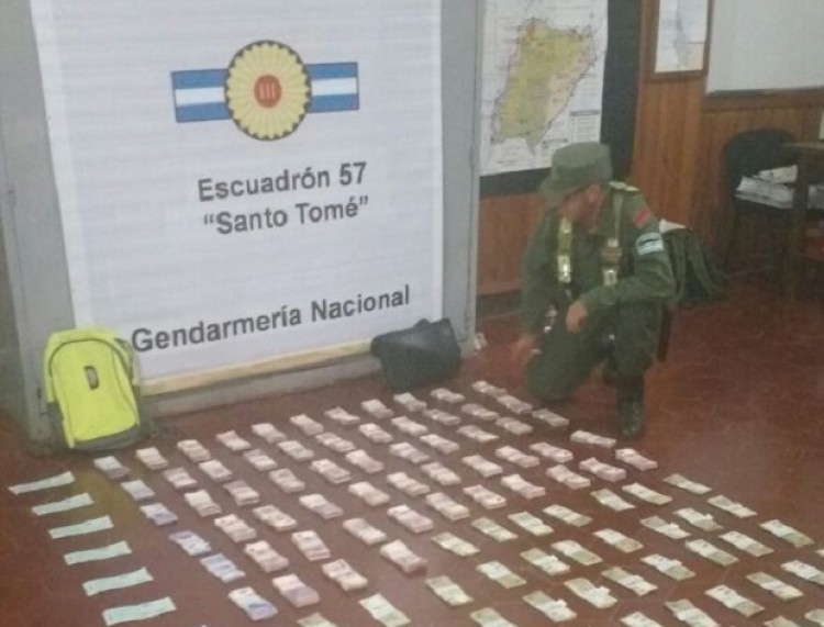 Efectivos del Escuadrón 57 "Santo Tomé" de Gendarmería Nacional se incautaron de 1.250.000 pesos argentinos y 191.788 pesos en cheques, como resultado de un control efectuado a un vehículo que se dirigía hacia Buenos Aires y cuyo conductor no contaba con la documentación que respalde la tenencia legal de esos haberes. El hecho se desarrolló en el Paraje Cuay Grande (Corrientes), sobre el kilómetro 669 de la ruta nacional 14, cuando los uniformados detuvieron la marcha de un automóvil procedente de Misiones, el cual era conducido por un hombre mayor de edad. Al momento de efectuar la inspección, los funcionarios observaron que dentro del rodado había una mochila y un bolso de mano donde se ocultaba dinero en efectivo, sin la documentación que acredite su legal procedencia y tenencia, que totalizó 1.250.000 pesos en efectivo y $191.788 en cheques.    Intervino el Juzgado Federal de Paso de los Libres, que dispuso que se decomise la totalidad del dinero y que el involucrado quede supeditado a la causa.