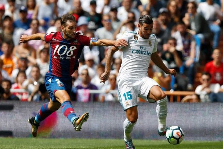 Iván López Ivi abrió el marcador para el Levante al controlar un balón en el área en un saque de banda y sorprender al portero Kiko Casilla (12), antes de que Lucas Vázquez aprovechara un rechace del portero Raúl Fernández para hacer el empate (36).Los blancos, que siguieron sin poder contar con el sancionado Cristiano Ronaldo, saltaron al campo con muchas novedades en sus filas como la entrada del joven francés Theo Hernández por la izquierda.Tras el empate cosechado en frente al Valencia en la segunda jornada de Liga (2-2), el Real Madrid buscaba una victoria, que le diera el liderato liguero, pero se encontró con un Levante rocoso, que impidió el objetivo.El equipo granota se mostró agresivo en los primeros minutos llegando pronto su gol cuando tras un saque de banda desde la derecha, Iván López Ivi controló ante Dani Carvajal para acabar batiendo a Kiko Casilla (12).Lucas Vázquez providencialEl gol fue el toque de carga para el Real Madrid, que apretó en su presión a los visitantes, haciéndose con el control del balón.El Real Madrid conseguía desbordar, especialmente por la izquierda con las subidas de Theo, muy desestabilizante, y Marcelo.Las ocasiones se sucedían para el Real Madrid, pero lo blancos se toparon con la buena actuación del meta Raúl Fernández, héroe de su equipo.En el 28, los locales recibían otro golpe cuando Benzema se hizo daño en la pierna derecha al intentar un control, y tuvo que retirarse dejando su lugar a Gareth Bale.El partido parecía irse al descanso con el 0-1, pero entonces el portero Raúl logró despejar un remate de Sergio Ramos a saque de esquina, sólo para ver como Lucas Vázquez empujaba el balón a la red haciendo el empate (36).El empate dio un plus de ánimo al Real Madrid que tendría una buena ocasión para adelantarse en las botas de Bale.El galés recibió en velocidad un balón largo de Sergio Ramos soltando un disparo cruzado que el portero del Levante mandó a córner con dificultades (45).Tras el descanso, el Levante volvió a entrar con fuerza con un disparo raso de Álex Alegría que detuvo Casilla (49), pero al igual que en la primera parte, el Real Madrid fue de menos a más para volver a hacerse con el control del balón.Insistencia sin premioEl técnico blanco, Zinedine Zidane, decidió meter más talento y control en el centro del campo con la entrada de Francisco Alarcón Isco (62) y Mateo Kovacic (72), pero su equipo no daba con la tecla.El Levante tapaba bien los huecos forzando cada vez más a los locales a recurrir a los centros desde lejos al área, mientras buscaba sus oportunidades al contraataque.Con el tiempo cumplido, Kroos se sacó un disparo que dio en el palo izquierdo de Raúl (90+2) en lo que fue la última oportunidad de un Real Madrid con diez tras la expulsión de Marcelo por darle una patada al colombiano Jefferson Lerma.El Real Madrid, con este empate, se queda a un punto de los tres primeros de la clasificación Real Sociedad (1º), Barcelona (2º) y Leganés (3º).El Leganés cayó el viernes en el primer partido de la jornada 2-1 frente al Leganés, mientras que el Barcelona cerrará este domingo con el derbi catalán contra el Espanyol.La Real Sociedad se enfrentará el domingo al Deportivo de La Coruña.Fuente: Agencia de Noticias AFP/NA