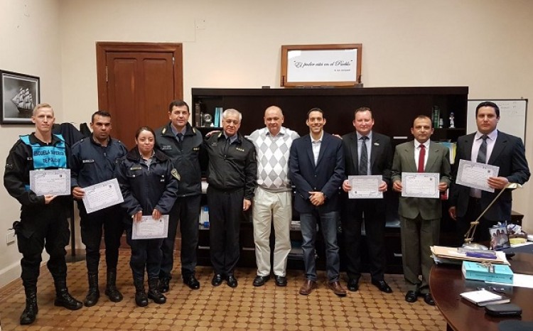 En una reunión encabezada por el ministro de Gobierno, Marcelo Gabriel Pérez, se entregaron certificados de reconocimiento a seis efectivos de la Policía de Misiones que se destacaron con su accionar y vocación de servicio en diferentes procedimientos.La entrega de las distinciones se llevó a cabo en la mañana de este martes en la Sala de Situación del Ministerio de Gobierno y acompañaron al titular de la cartera el subsecretario de Gobierno, Ricardo Wellbach; el jefe de Policía, Manuel Mártires Céspedes; y el subjefe, José Mazur. En la oportunidad, el oficial principal Arturo Pascual Acevedo, la oficial auxiliar Miriam Gamarra, el sargento primero Víctor Karasek y el cabo primero Marcelo Fleitas, con prestación de servicios en la Unidad Regional XI de Aristóbulo del Valle, fueron reconocidos tras su destacado profesionalismo en el esclarecimiento del hecho caratulado "robo en banda y en despoblado" ocurrido el pasado 7 de agosto en la Escuela 421 “Provincia de La Pampa”, situada en esa localidad.Además, fue reconocido por otro digno accionar el cabo Pablo Guerrero, quien el 23 de agosto último ingresó a las aguas del río Paraná a la altura del cuarto tramo de la Costanera de Posadas, para salvar la vida de una joven de 17 años que se había arrojado con intenciones de quitarse la vida.De la misma manera, se felicitó al joven cadete de primer año de la Escuela Superior de Policía, Rolando Kaenard Pohler, por su asistencia inmediata a una mujer que se descompuso en el centro de Posadas y que no poseía su inhalador en la cartera. Ante esta situación, el joven compró el medicamento y ayudó a la mujer que tenía dificultades para respirar.En la ocasión, y tras oír a cada uno de los presentes, el ministro Pérez agradeció y expresó: “Para nosotros es un orgullo contar con personal policial como ustedes y ojalá cada vez sean más. Siéntanse más que satisfechos porque han hecho lo que debían hacer y espero que sigan por ese camino”.