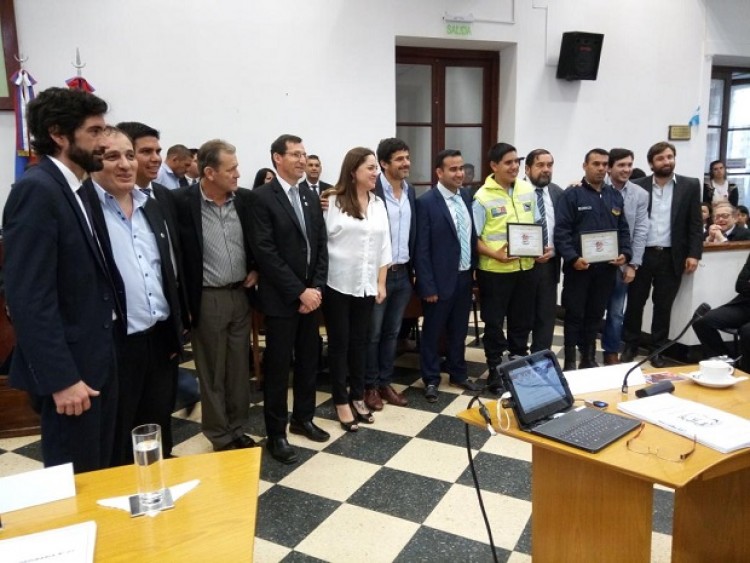 El inspector municipal Ramón Alberto Rojas y el cabo Pablo Guerrero fueron distinguidos este jueves por el Concejo Deliberante de Posadas como "personalidades destacadas" de la ciudad por el acto heroico que protagonizaron el pasado 23 de agosto pasado al rescatar y salvarle la vida a una joven mujer que se había arrojado a las aguas del río Paraná.Fue, quizás, el más destacado de los varios homenajes que este jueves brindaron los concejales posadeños, en una sesión donde además se decidió, sobre tablas y a pedido de los propios jóvenes, <a href="http://www.primeraedicion.com.ar/nota/255688/establecen-nuevos-horarios-para-los-desfiles-de-estudiantina.html">extender hasta las 5 el horario de cierre de los desfiles de la Estudiantina</a>, aduciendo razones de seguridad, ya que las líneas del transporte público recién comienzan a circular a esa hora.Por el contrario, el Deliberativo capitalino soslayó el tratamiento de una ordenanza limitando el <a href="http://www.primeraedicion.com.ar/nota/255565/pirotecnia-controlada-con-dictamen-favorable-.html">uso de pirotecnia en la ciudad, cuyo dictamen había sido suscrito en comisión</a> el lunes pasado. La presión de los comerciantes de ese rubro, algunos de ellos presentes en la sesión, motivó el retiro del expediente, frustrando la pretensión de las entidades protectoras de animales que abogaban por él.A raíz de esa decisión a último momento, el autor de la iniciativa Daniel Amarilla (UP), amenazó con renunciar a la comisión de Legislación General, donde, tras un largo análisis, se había elaborado el dictamen ahora retenido.Entre los homenajes, se declaró huésped de honor al “payamédico” José Peluchi, de visita en la ciudad, y se brindaron <a href="http://www.primeraedicion.com.ar/nota/255691/concejales-de-posadas-reconocieron-los-53-anos-de-trayectoria-de-nit.html" style="">reconocimientos al músico Julio “Nito” Encina</a> y al conjunto “Los Tres del Río” por sus largas trayectorias en la difusión de la música regional; así como a la Red de Salud Mental de Misiones.